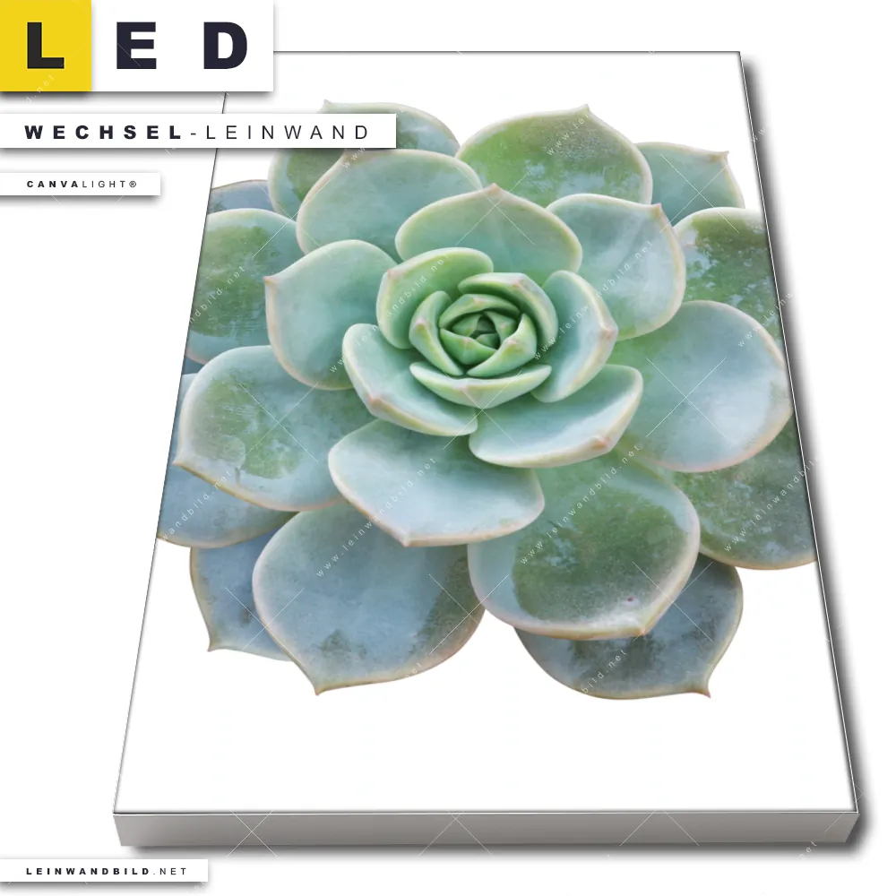 Du konfigurierst Deine individuelle LED Wechsel-Leinwand Canvalight® TEX | Sukkulente No.3 | Hochformat und wir produzieren sie NEU für Dich. Unsere Blumen - Botanik, Muster - Texturen Austausch-Fotoleinwände für Canvalight® LED Bilder sind KEINE Lagerware. Du bist Dir unsicher, welches Motiv oder Format das richtige für dein individuelles LED Wechselmotiv auf Leinwand ist, dann helfen wir dir gerne weiter und beraten dich!