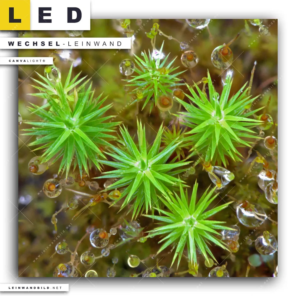 Du bist auf der Suche nach einer Blumen - Botanik Wechsel-Leinwand für Dein LED-Leinwandbild im Quadratischen Format? Begriffe wie Natur, Tau, Moos, Wassertropfen haben Dich auf der Suche nach Deiner Ersatz-Leinwand für dein LED Wandbild mit wechselbarer Leinwand inspiriert? Farben wie Grün, Braun dürfen auf Deinem neuen Wechselmotiv für Dein XXL Leinwand-LED-Bild nicht fehlen und Leinwände im Natürlich - Realistisch Stil für Leuchtbilder passen perfekt zu Deinem Einrichtungsstil?