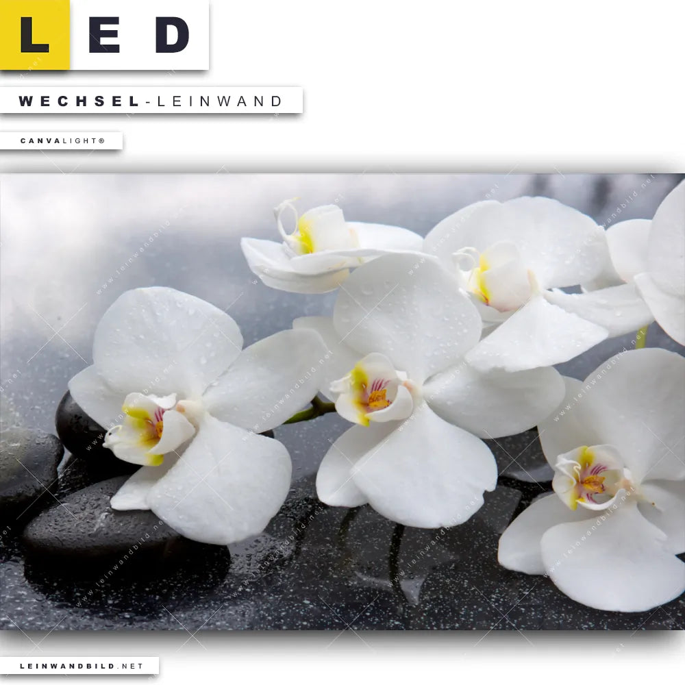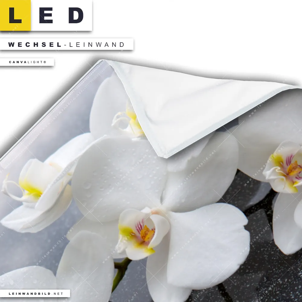 Du konfigurierst Deine individuelle LED Wechsel-Leinwand Canvalight® TEX | Weiße Orchideen | Querformat und wir produzieren sie NEU für Dich. Unsere Blumen - Botanik, Buddha - Feng Shui Austausch-Fotoleinwände für Canvalight® LED Bilder sind KEINE Lagerware. Du bist Dir unsicher, welches Motiv oder Format das richtige für dein individuelles LED Wechselmotiv auf Leinwand ist, dann helfen wir dir gerne weiter und beraten dich!