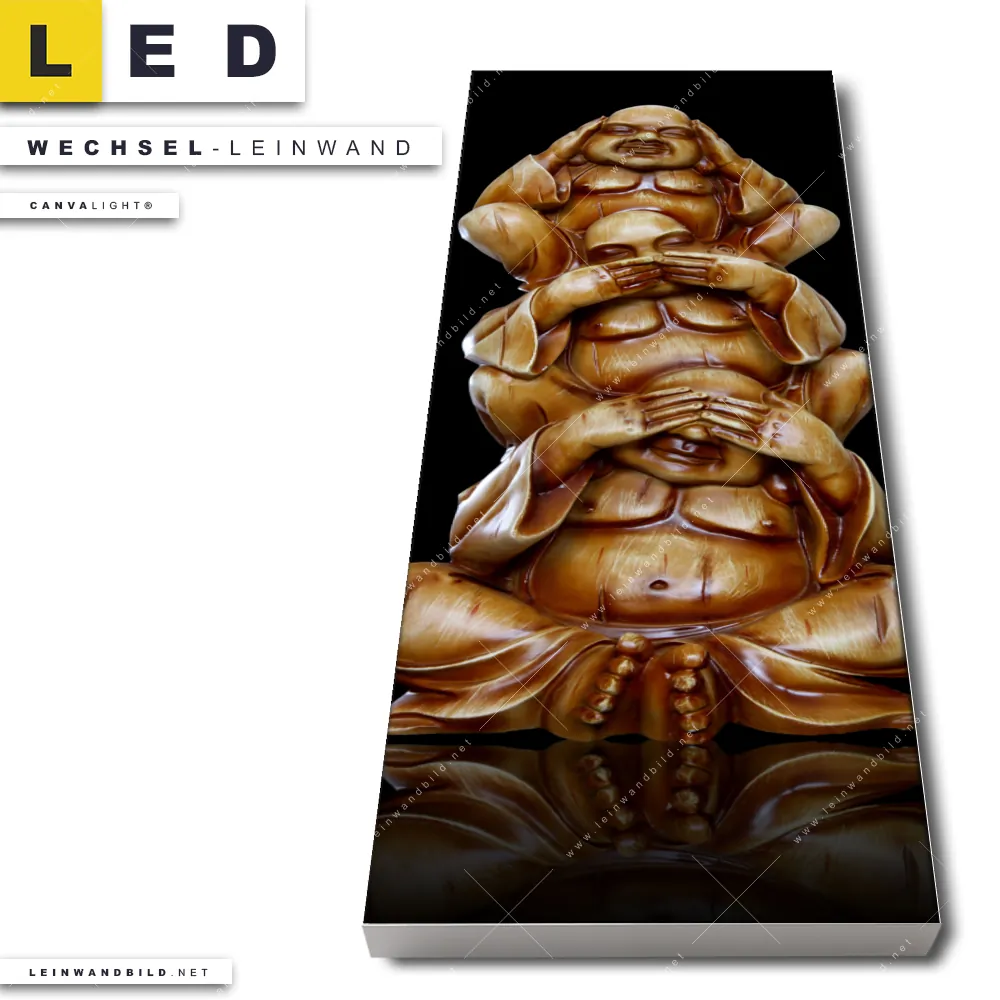 Du konfigurierst Deine individuelle LED Wechsel-Leinwand Canvalight® TEX | Buddha - no evil | Schmal und wir produzieren sie NEU für Dich. Unsere Buddha - Feng Shui Austausch-Fotoleinwände für Canvalight® LED Bilder sind KEINE Lagerware. Du bist Dir unsicher, welches Motiv oder Format das richtige für dein individuelles LED Wechselmotiv auf Leinwand ist, dann helfen wir dir gerne weiter und beraten dich!