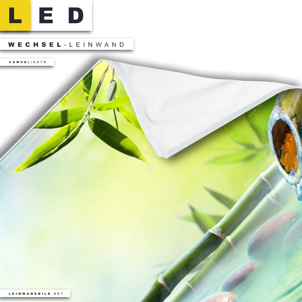 Du bist auf der Suche nach einer Buddha - Feng Shui, Blumen - Botanik Wechsel-Leinwand für Dein LED-Leinwandbild im Querformat? Begriffe wie Buddhismus, Religion, Feng Shui, Zen, Meditation, Bambus, Zengarten, Steine, Zensteine, Blumen, Blüte, Brunnen, Wasser, Orchidee haben Dich auf der Suche nach Deiner Ersatz-Leinwand für dein breites LED Wandbild mit wechselbarer Leinwand inspiriert? Farben wie Grün, Hellgrün, Türkis, Schwarz, Weiss dürfen auf Deinem neuen Wechselmotiv für Dein XXL Leinwand-LED-Bild nicht fehlen und Leinwände im Mixed Media, Modern Art, Floral Stil für Leuchtbilder passen perfekt zu Deinem Einrichtungsstil?