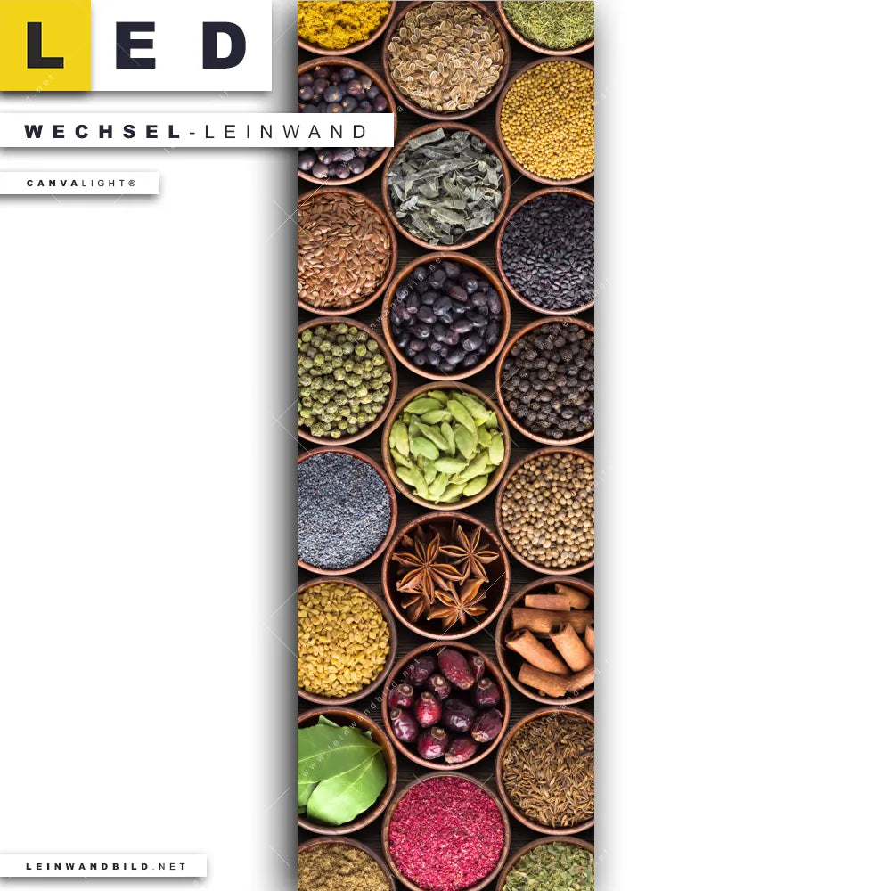 Du bist auf der Suche nach einer Essen - Trinken Wechsel-Leinwand für Dein LED-Leinwandbild im Schmalen Format? Begriffe wie Gewürze, Kräuter, kochen, Chili, Pfeffer, Ingwer, Paprika haben Dich auf der Suche nach Deiner Ersatz-Leinwand für dein LED Wandbild im Panorama-Hochformat mit wechselbarer Leinwand inspiriert? Farben wie Bunt dürfen auf Deinem neuen Wechselmotiv für Dein XXL Leinwand-LED-Bild nicht fehlen und Leinwände im Modern Art, Natürlich - Realistisch Stil für Leuchtbilder passen perfekt zu Deinem Einrichtungsstil?