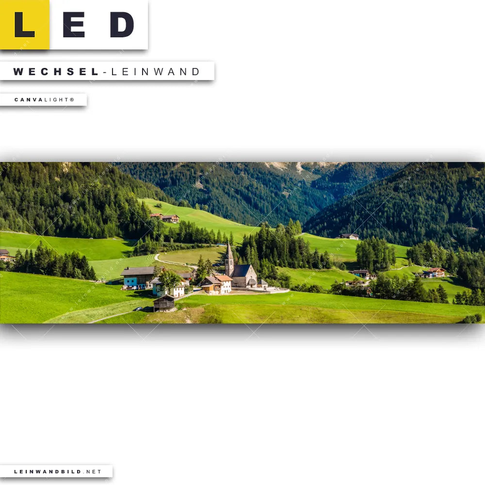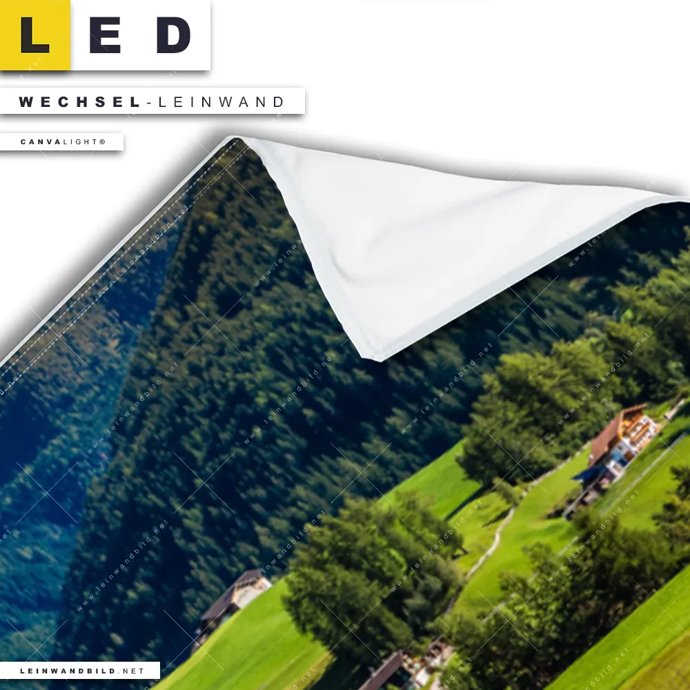 LED Wechsel-Leinwand Canvalight® TEX | Idyllisches Dorf in den Bergen | Panorama