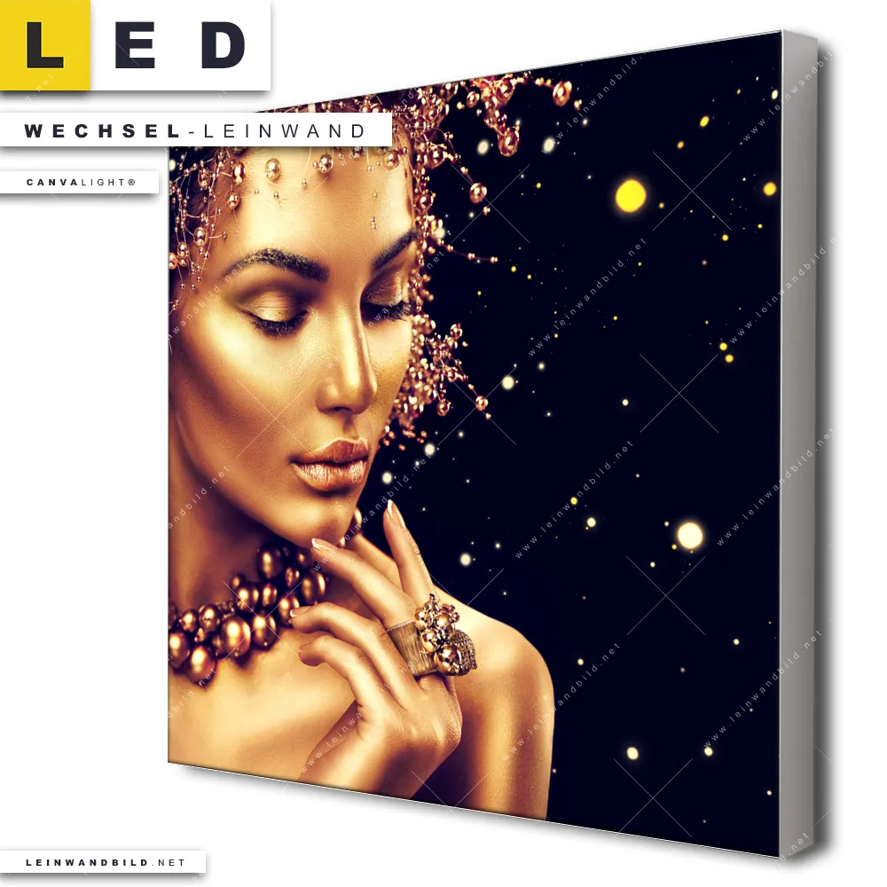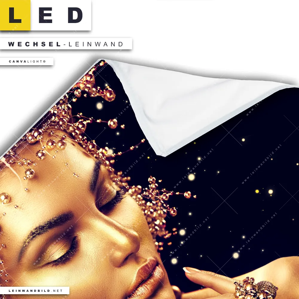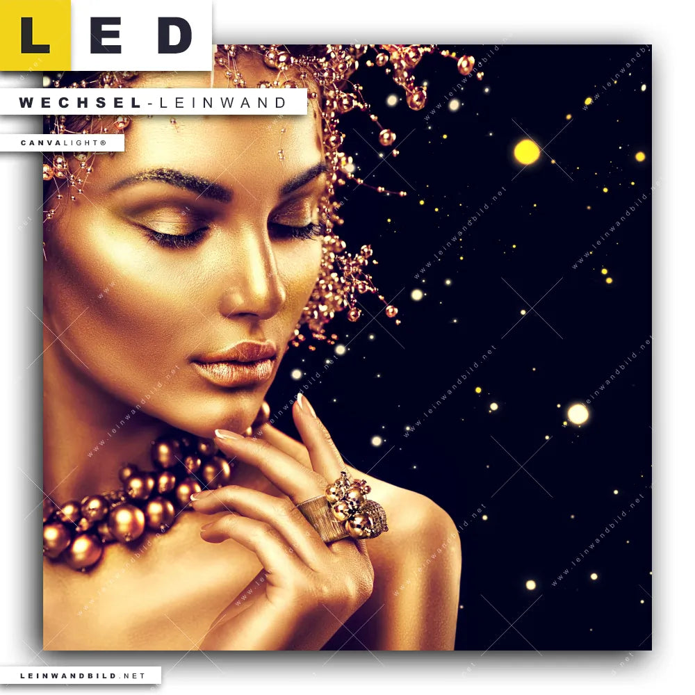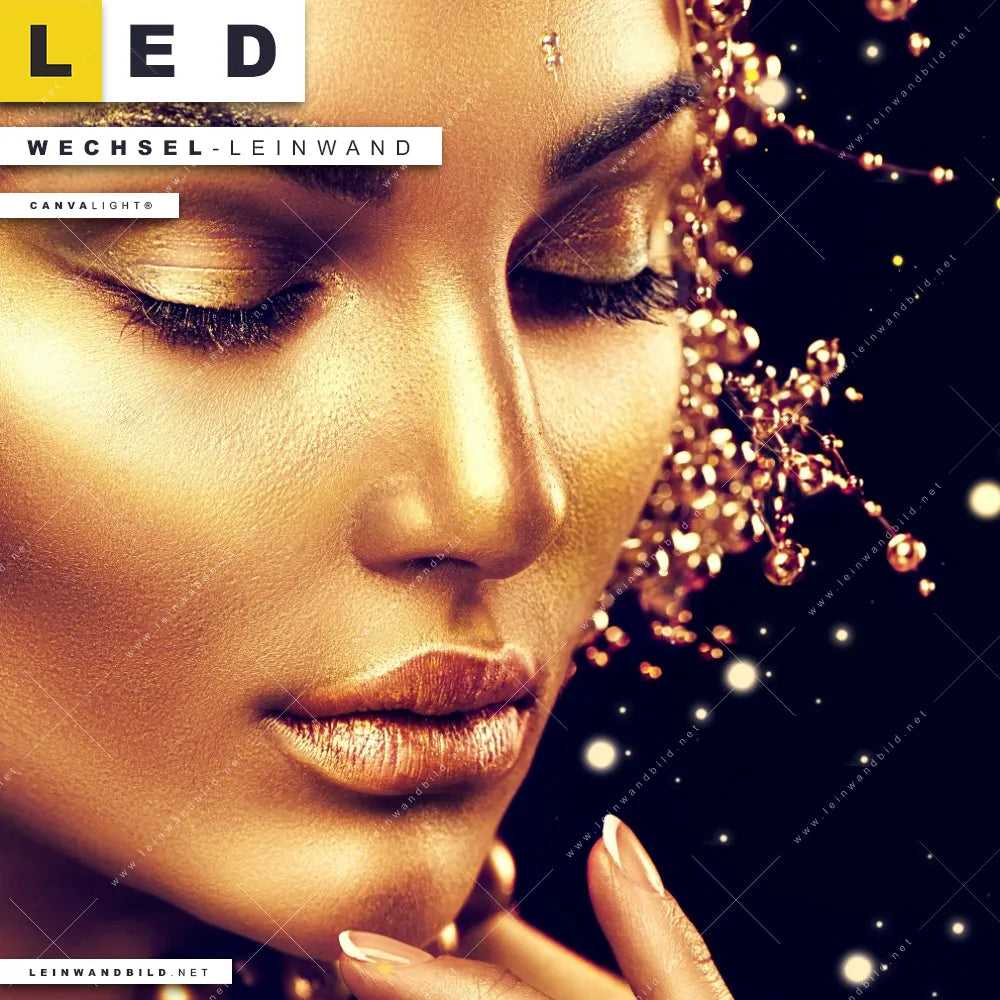 Du bist auf der Suche nach einer Porträts - Menschen Wechsel-Leinwand für Dein LED-Leinwandbild im Quadratischen Format? Begriffe wie Frau, Farbe, Beauty, Gesicht, Körper, Make-Up, Schminke, Mädchen, Glitzer, Glitter haben Dich auf der Suche nach Deiner Ersatz-Leinwand für dein LED Wandbild mit wechselbarer Leinwand inspiriert? Farben wie Gold, Schwarz dürfen auf Deinem neuen Wechselmotiv für Dein XXL Leinwand-LED-Bild nicht fehlen und Leinwände im Modern Art, Minimalistisch Stil für Leuchtbilder passen perfekt zu Deinem Einrichtungsstil?
