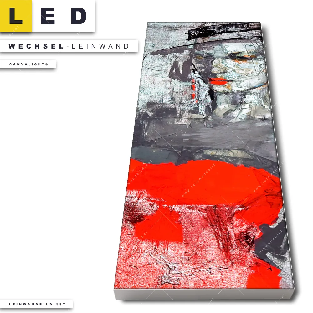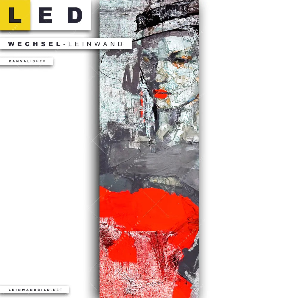 Du bist auf der Suche nach einer Porträts - Menschen Wechsel-Leinwand für Dein LED-Leinwandbild im Schmalen Format? Begriffe wie Abstrakt, Modern, Kunst, Gemälde, Leinwand, Frau, Portrait, Geheimnis, schweigen, Lippen haben Dich auf der Suche nach Deiner Ersatz-Leinwand für dein LED Wandbild im Panorama-Hochformat mit wechselbarer Leinwand inspiriert? Farben wie Weiss, Schwarz, Grau , Rot dürfen auf Deinem neuen Wechselmotiv für Dein XXL Leinwand-LED-Bild nicht fehlen und Leinwände im Abstrakt, Modern Art Stil für Leuchtbilder passen perfekt zu Deinem Einrichtungsstil?