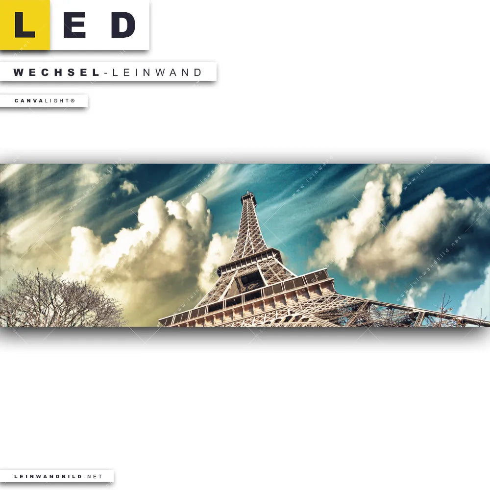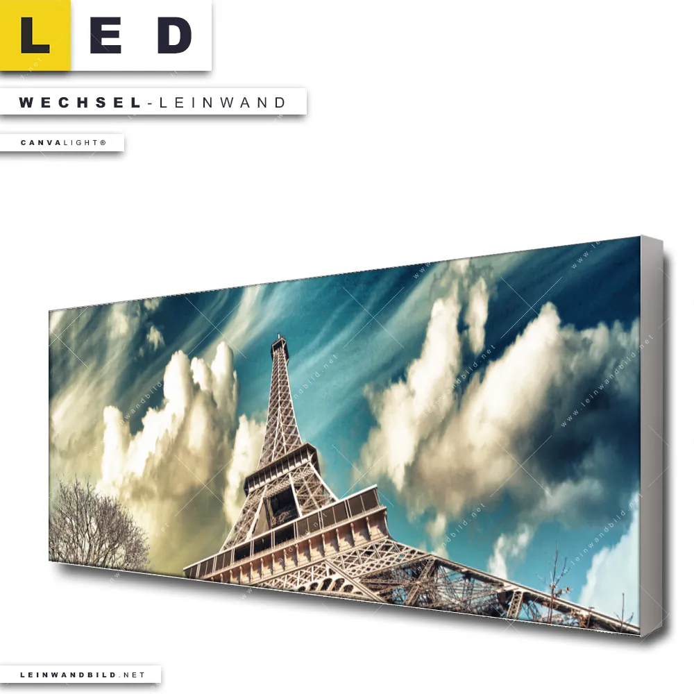 Dann sollte die Wechsel-Leinwand Canvalight® TEX | Eifelturm in Paris | Panorama den Weg zu Dir finden. Die Austausch-Leinwand Bewölkter Himmel über Eifelturm - passend für unsere stufenlos dimmbaren, steckerfertigen Leinwandbilder im LED Leuchtrahmen mit Fernbedienung und optionaler Farbtemperatursteuerung - fügt sich als Eye-Catcher harmonisch in jedes Arzt - Praxis, Büro - Kanzlei, Flur - Eingangsbereich, Wohnzimmer - Schlafzimmer Raumkonzept ein.