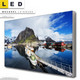 Bitte beachte, dass die Farben, der auf dem Monitor abgebildeten Fischerdorf am norwegischen Fjord Darstellung, möglicherweise von den Originalfarben deiner Canvalight® TEX Wechsel-Leinwand abweichen können.