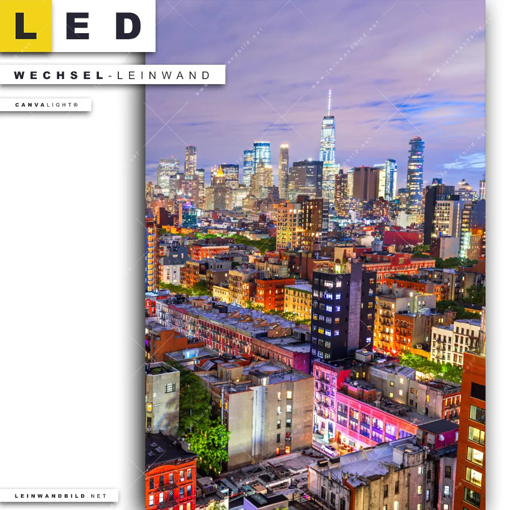 Du bist auf der Suche nach einer Architektur - Gebäude, Städte - Skylines Wechsel-Leinwand für Dein LED-Leinwandbild im Hochformat? Begriffe wie Skyline, Amerika, New York, Abendhimmel, Stadtpanorama, Metropole, Nachtlichter haben Dich auf der Suche nach Deiner Ersatz-Leinwand für dein LED Wandbild mit wechselbarer Leinwand inspiriert? Farben wie Bunt dürfen auf Deinem neuen Wechselmotiv für Dein XXL Leinwand-LED-Bild nicht fehlen und Leinwände im Natürlich - Realistisch Stil für Leuchtbilder passen perfekt zu Deinem Einrichtungsstil?