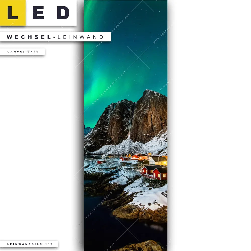 Du bist auf der Suche nach einer Landschaften, Städte - Skylines Wechsel-Leinwand für Dein LED-Leinwandbild im Schmalen Format? Begriffe wie See, Nordlicht, Aurora, Norwegen, Island, Lichter, Skandinavien, Berg, Natur, Winter, Sonnenuntergang haben Dich auf der Suche nach Deiner Ersatz-Leinwand für dein LED Wandbild im Panorama-Hochformat mit wechselbarer Leinwand inspiriert? Farben wie Braun, Grün, Rot, Türkis, Blau dürfen auf Deinem neuen Wechselmotiv für Dein XXL Leinwand-LED-Bild nicht fehlen und Leinwände im Natürlich - Realistisch Stil für Leuchtbilder passen perfekt zu Deinem Einrichtungsstil?