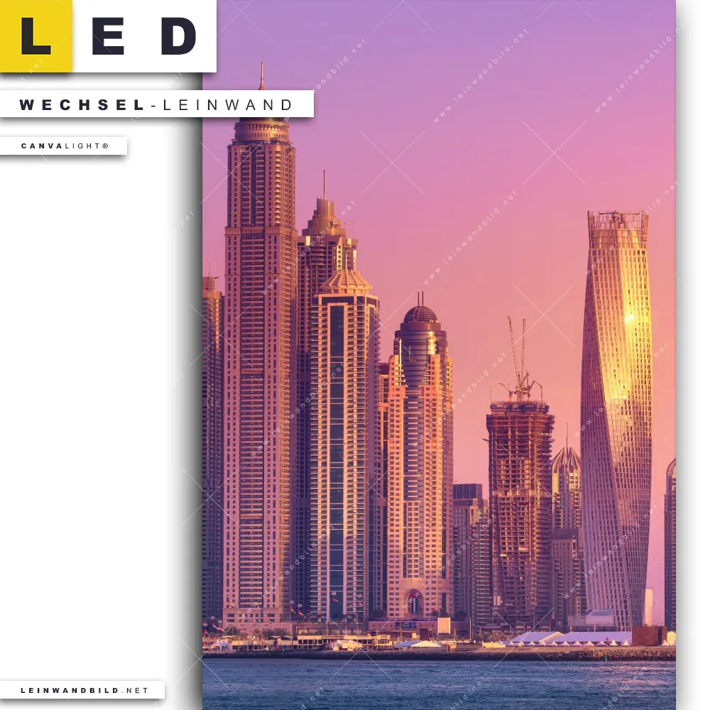 LED Wechsel-Leinwand Canvalight® TEX | Sonnenaufgang in Dubai | Hochformat