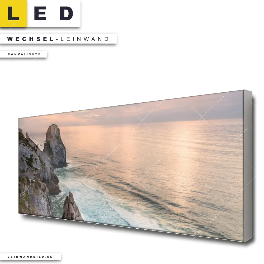 Du bist auf der Suche nach einer Landschaften, Strand - Meer Wechsel-Leinwand für Dein LED-Leinwandbild im Panorama-Format? Begriffe wie Meer, Küste, Sonnenuntergang, Stein, Natur, Felsen, Sommer, Herbst haben Dich auf der Suche nach Deiner Ersatz-Leinwand für dein extra breites LED Wandbild mit wechselbarer Leinwand inspiriert? Farben wie Beige, Rosa, Mint dürfen auf Deinem neuen Wechselmotiv für Dein XXL Leinwand-LED-Bild nicht fehlen und Leinwände im Natürlich - Realistisch, Modern Art Stil für Leuchtbilder passen perfekt zu Deinem Einrichtungsstil?
