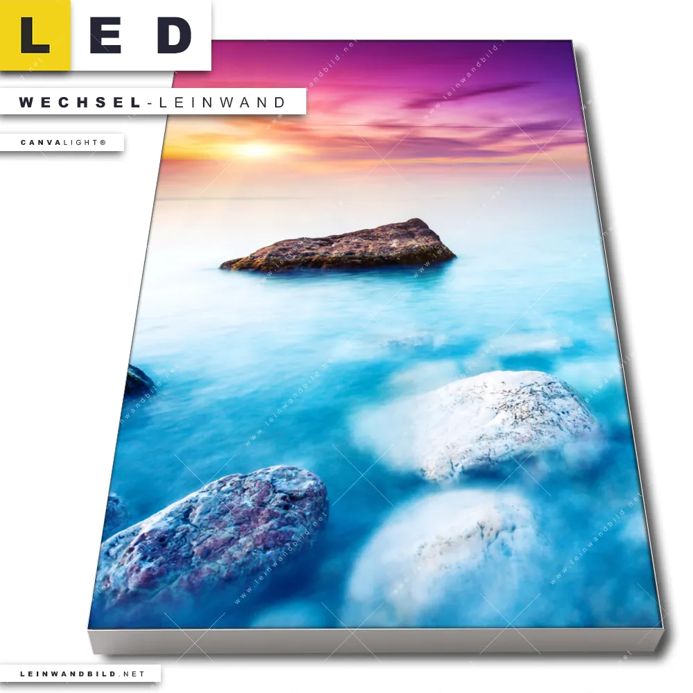 Du bist auf der Suche nach einer Landschaften, Strand - Meer Wechsel-Leinwand für Dein LED-Leinwandbild im Hochformat? Begriffe wie Meer, Küste, Sonnenuntergang, Strand, Felsen, Sommer haben Dich auf der Suche nach Deiner Ersatz-Leinwand für dein LED Wandbild mit wechselbarer Leinwand inspiriert? Farben wie Blau, Lila, Pink, Hellblau, Orange dürfen auf Deinem neuen Wechselmotiv für Dein XXL Leinwand-LED-Bild nicht fehlen und Leinwände im Natürlich - Realistisch, Modern Art Stil für Leuchtbilder passen perfekt zu Deinem Einrichtungsstil?