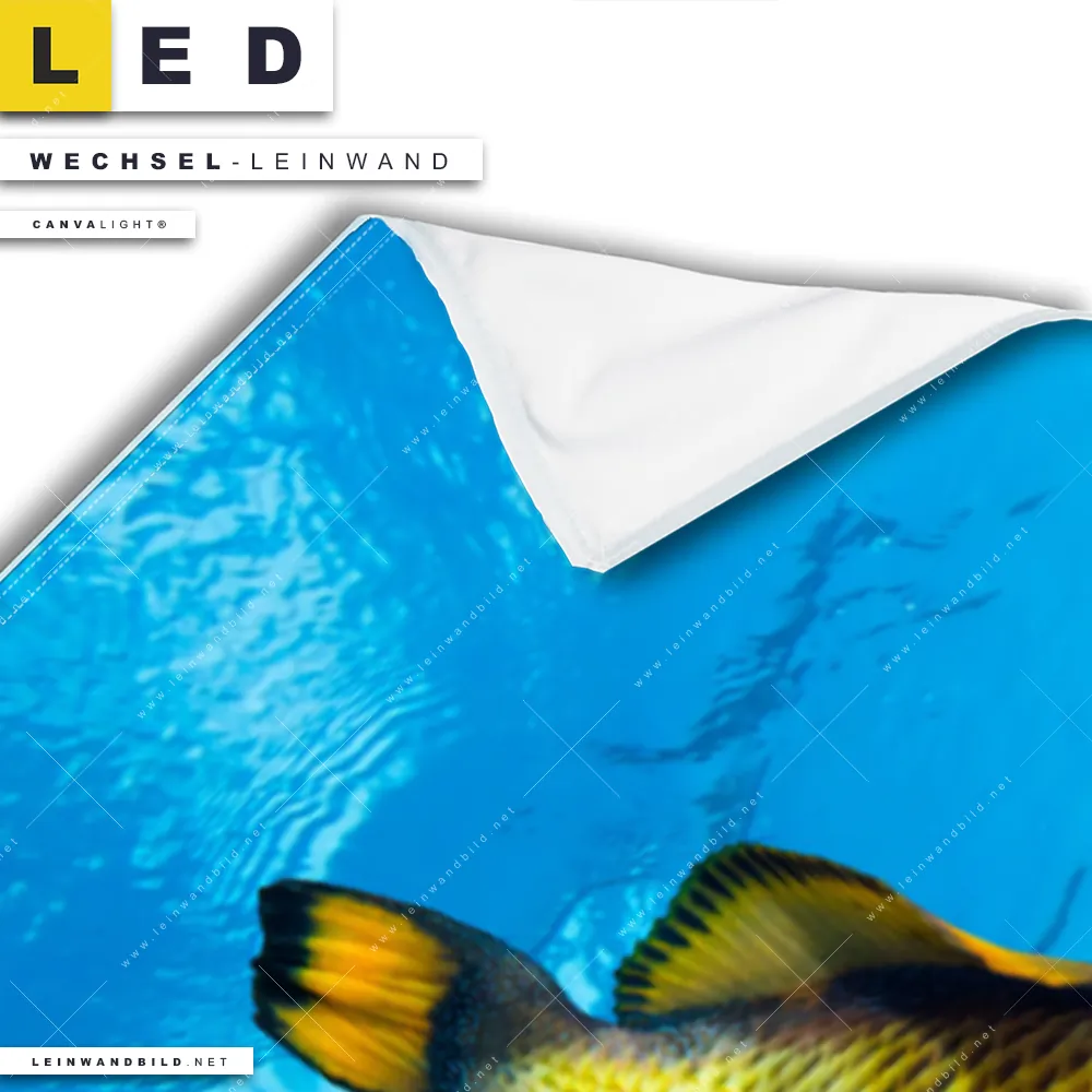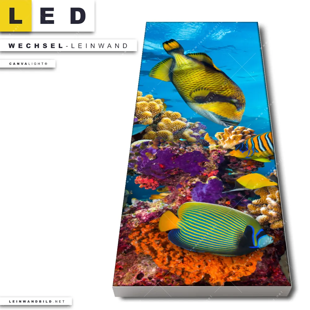 Du konfigurierst Deine individuelle LED Wechsel-Leinwand Canvalight® TEX | Korallen & Fische | Schmal und wir produzieren sie NEU für Dich. Unsere Strand - Meer, Tierwelt Austausch-Fotoleinwände für Canvalight® LED Bilder sind KEINE Lagerware. Du bist Dir unsicher, welches Motiv oder Format das richtige für dein individuelles LED Wechselmotiv auf Leinwand ist, dann helfen wir dir gerne weiter und beraten dich!