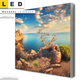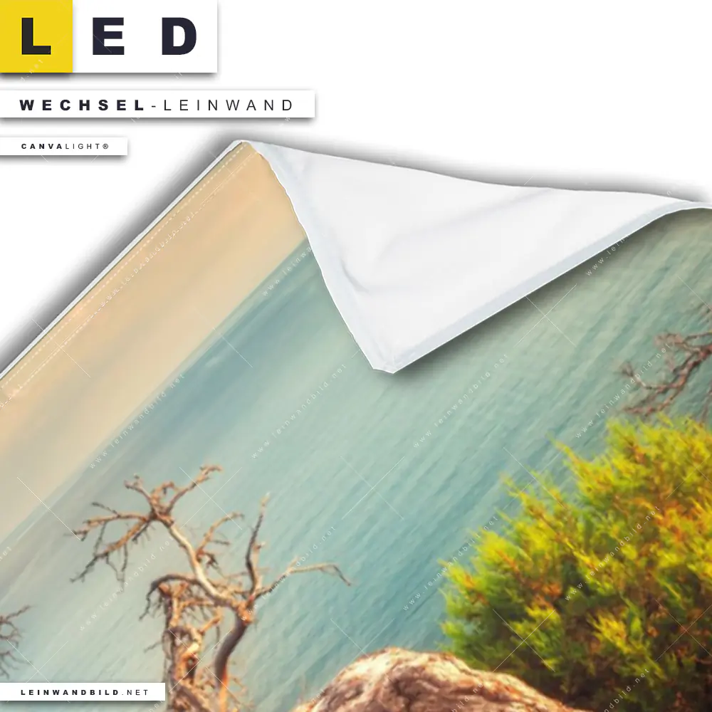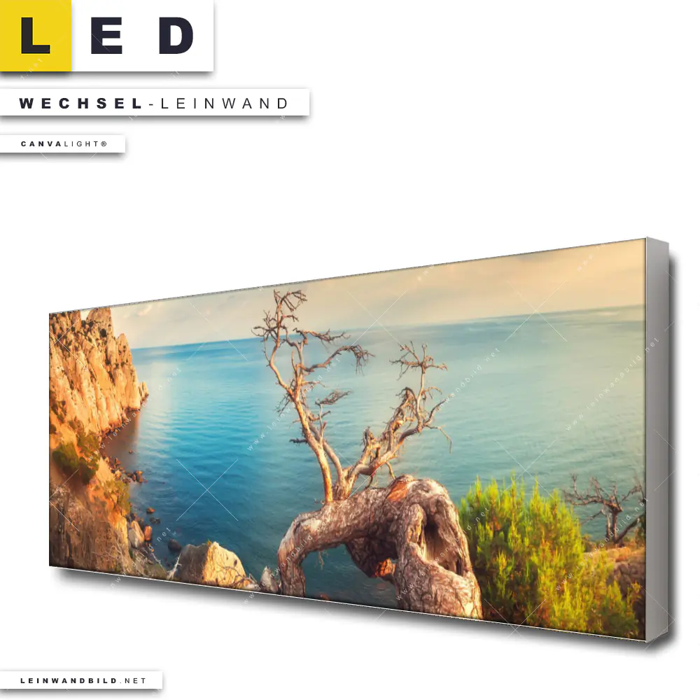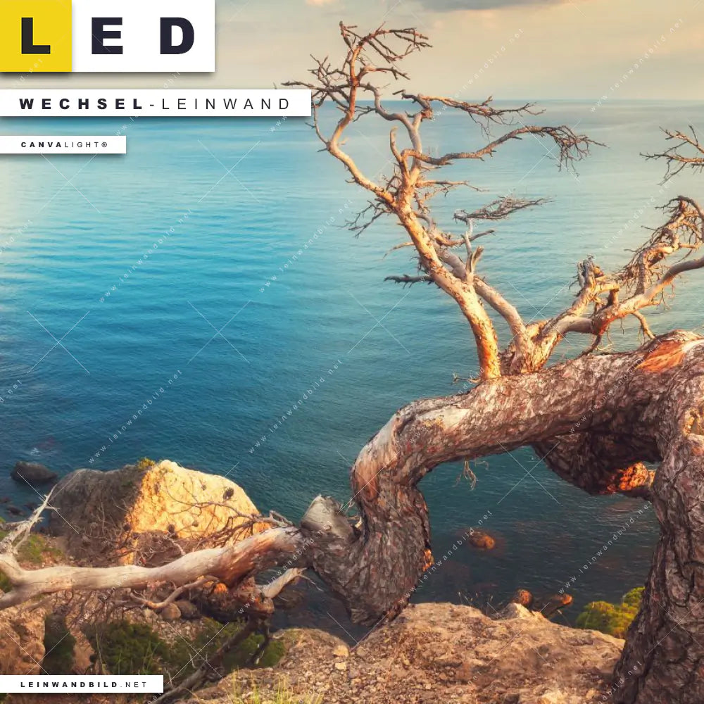 LED Wechsel-Leinwand Canvalight® TEX | Küstenlandschaft mit altem Baum | Panorama
