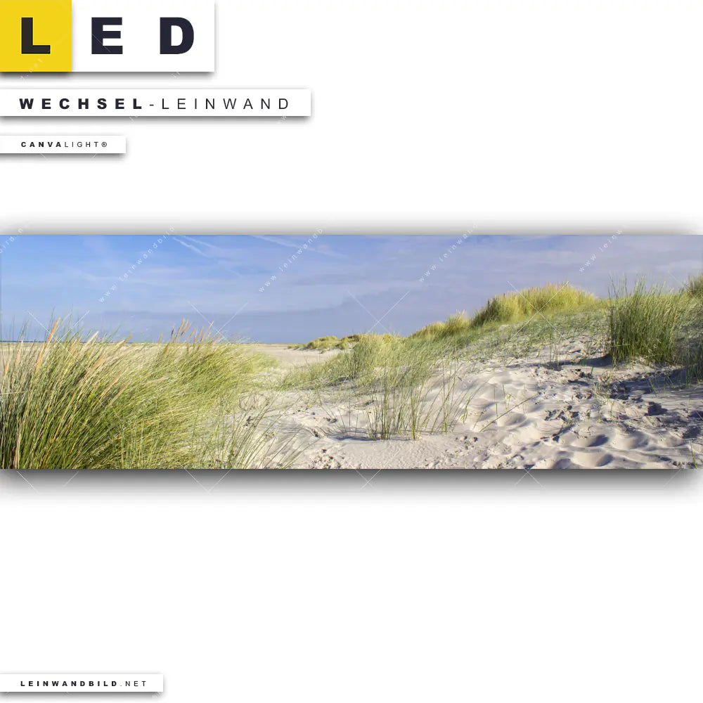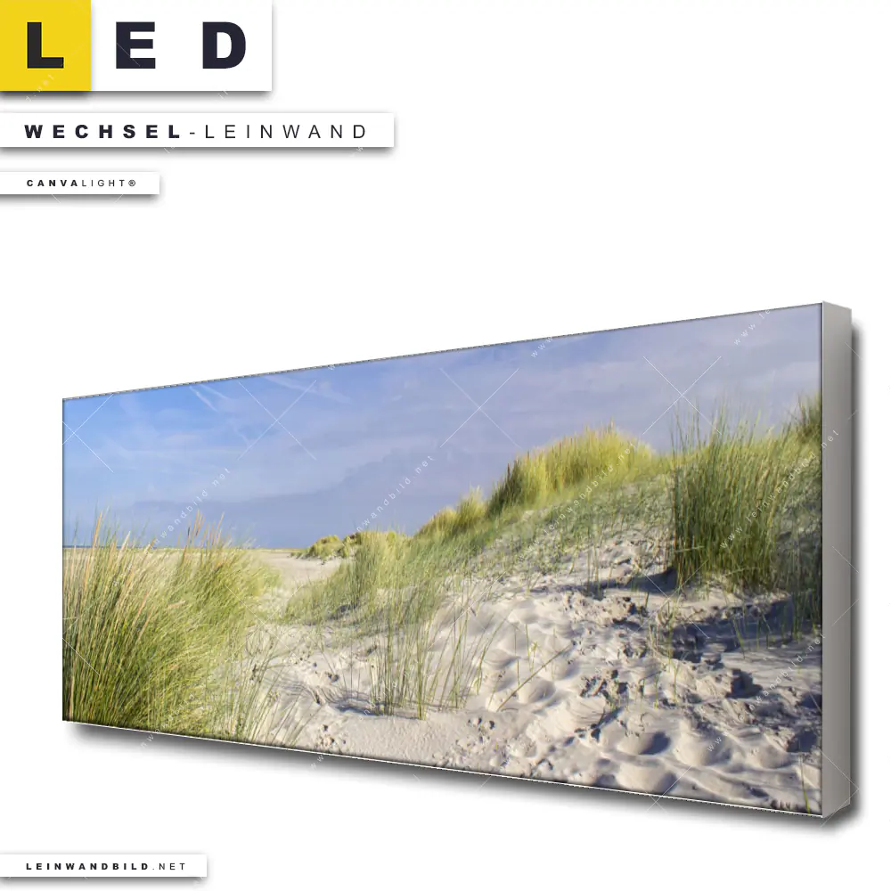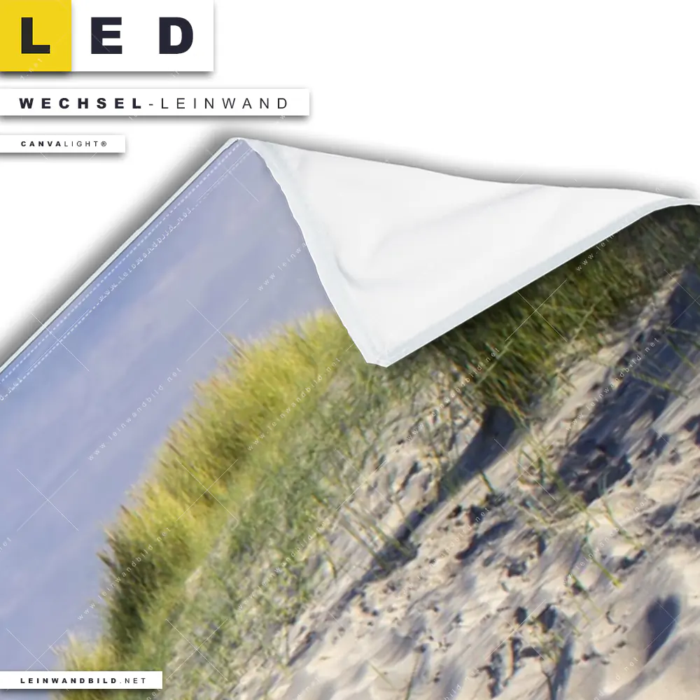 LED Wechsel-Leinwand Canvalight® TEX | Küstenwanderung durch Sanddünen | Panorama