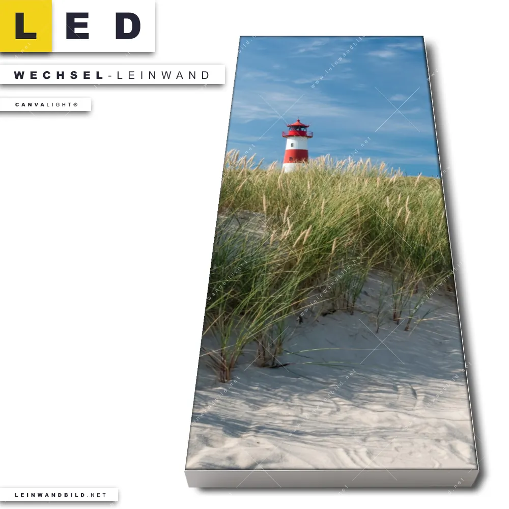 Du bist auf der Suche nach einer Landschaften, Strand - Meer Wechsel-Leinwand für Dein LED-Leinwandbild im Schmalen Format? Begriffe wie Meer, Strand, Leuchtturm, Sommer, Deutschland, Reise, Düne, Ostsee, Nordsee, Gras haben Dich auf der Suche nach Deiner Ersatz-Leinwand für dein LED Wandbild im Panorama-Hochformat mit wechselbarer Leinwand inspiriert? Farben wie Blau, Grün, Beige dürfen auf Deinem neuen Wechselmotiv für Dein XXL Leinwand-LED-Bild nicht fehlen und Leinwände im Natürlich - Realistisch Stil für Leuchtbilder passen perfekt zu Deinem Einrichtungsstil?