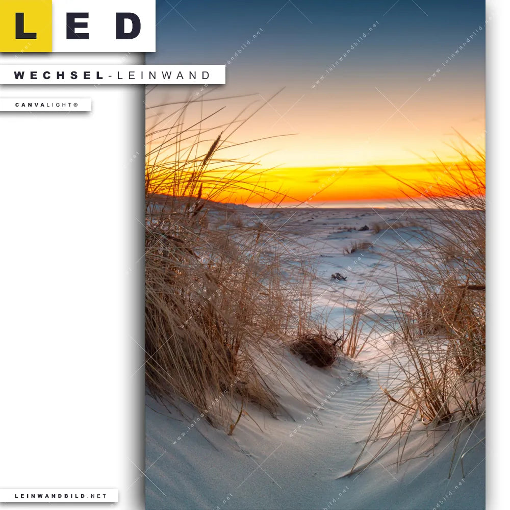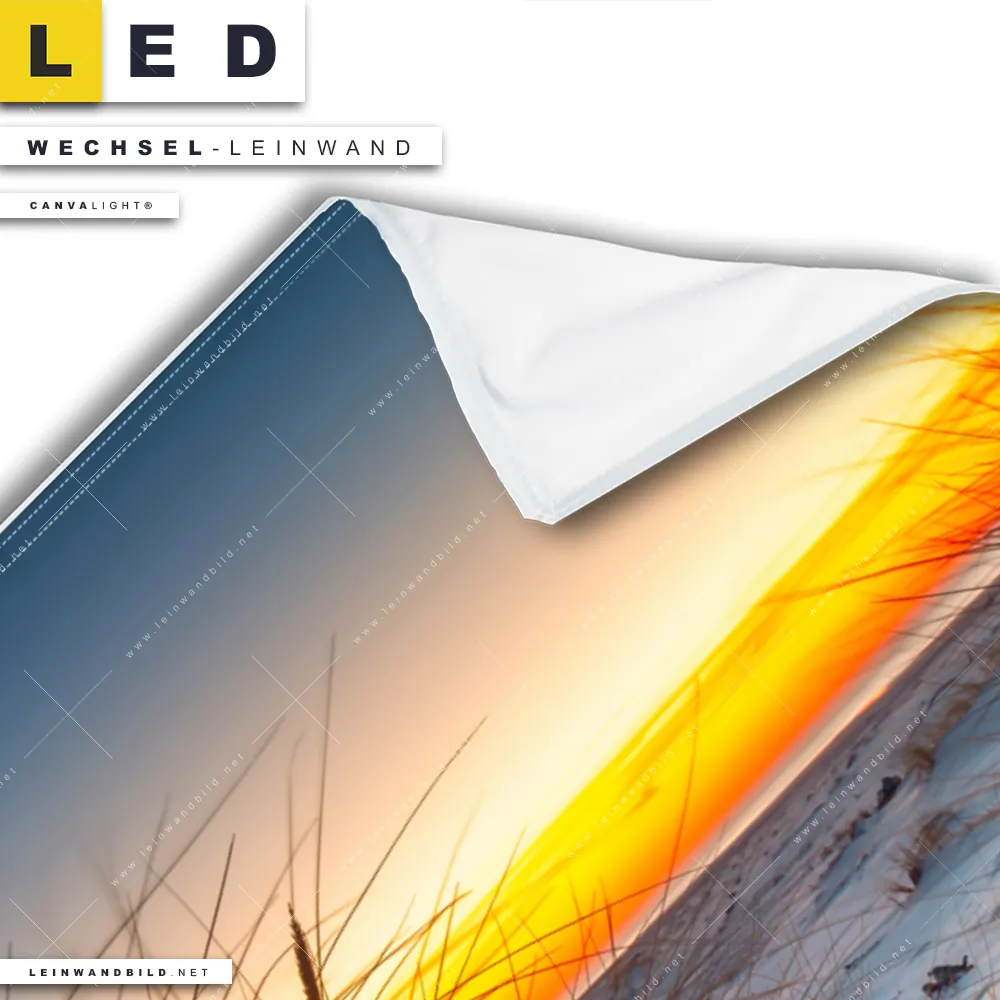 LED Wechsel-Leinwand Canvalight® TEX | Ostseestrand bei Sonnenuntergang | Hochformat