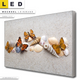 LED Wechsel-Leinwand Canvalight® TEX | Schmetterlinge & Muscheln im Sand | Schmal