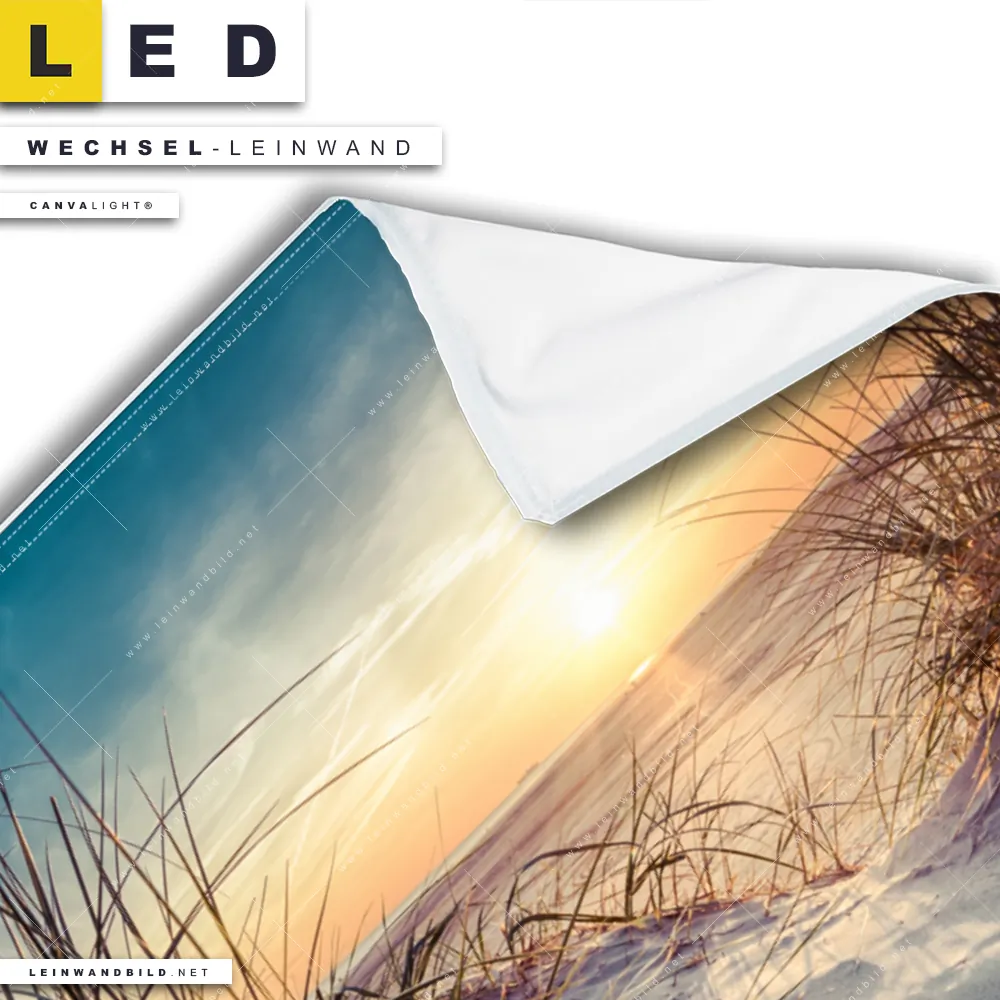 LED Wechsel-Leinwand Canvalight® TEX | Strandlandschaft mit Gras | Hochformat