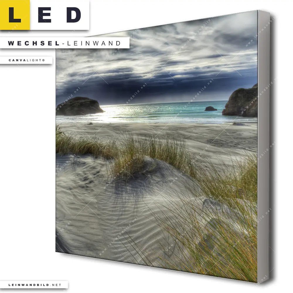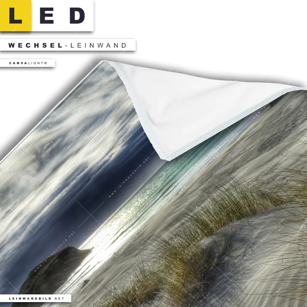 Du konfigurierst Deine individuelle LED Wechsel-Leinwand Canvalight® TEX | Stürmischer Himmel am Strand | Quadrat und wir produzieren sie NEU für Dich. Unsere Landschaften, Strand - Meer Austausch-Fotoleinwände für Canvalight® LED Bilder sind KEINE Lagerware. Du bist Dir unsicher, welches Motiv oder Format das richtige für dein individuelles LED Wechselmotiv auf Leinwand ist, dann helfen wir dir gerne weiter und beraten dich!