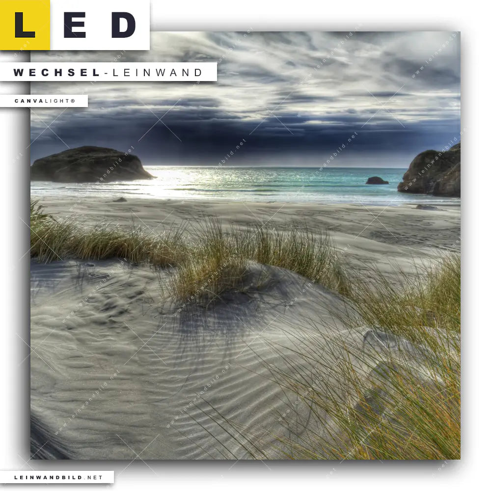 Du bist auf der Suche nach einer Landschaften, Strand - Meer Wechsel-Leinwand für Dein LED-Leinwandbild im Quadratischen Format? Begriffe wie Sommer, Bucht, Meer, Urlaub, Reisen, Nordsee, Ostsee, Dünen, Gräser, Felsen, Küste, Steine, Horizont haben Dich auf der Suche nach Deiner Ersatz-Leinwand für dein LED Wandbild mit wechselbarer Leinwand inspiriert? Farben wie Blau, Türkis, Grau , Beige, Braun, Grün dürfen auf Deinem neuen Wechselmotiv für Dein XXL Leinwand-LED-Bild nicht fehlen und Leinwände im Natürlich - Realistisch Stil für Leuchtbilder passen perfekt zu Deinem Einrichtungsstil?