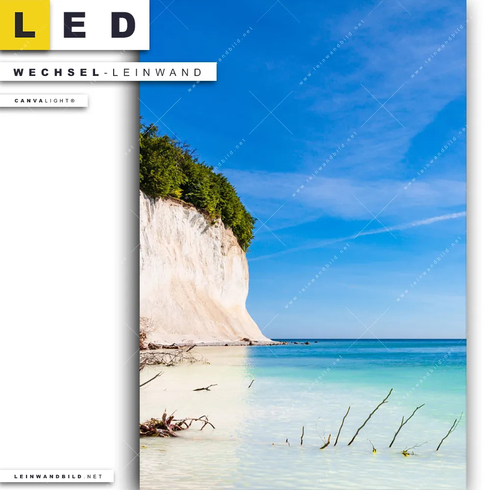 Auf der Suche nach Deinem neuen Wechselmotiv für LED Bilder mit austauschbarer Textil-Leinwand haben Dich Begriffe wie Sommer, Frühling, Deutschland, Insel, Felsen, Küste, Ostsee - Nordsee, Urlaub - Reisen inspiriert? Dann sollte die Wechsel-Leinwand Kreidefelsen auf Rügen für Canvalight® TEX LED Leuchtbilder den Weg zu Dir finden.