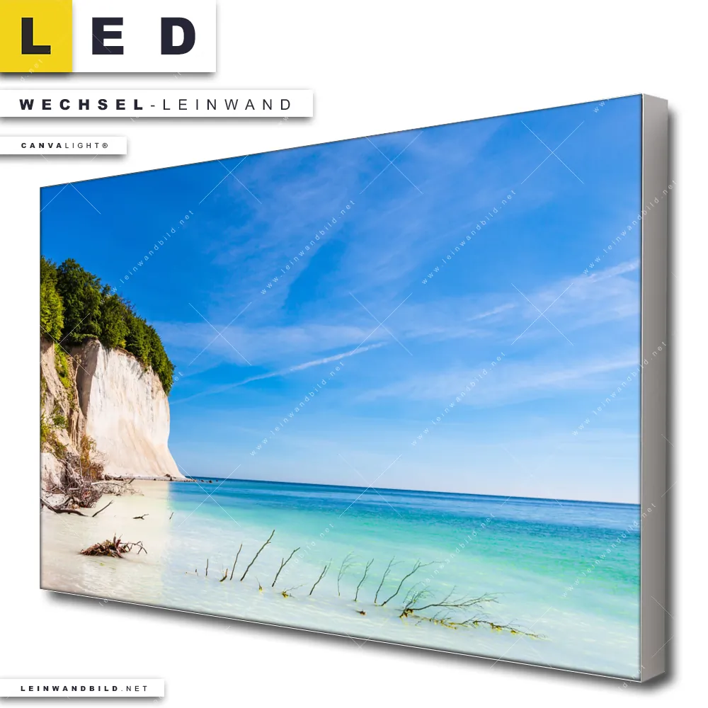 Du bist auf der Suche nach einer Strand - Meer, Landschaften Wechsel-Leinwand für Dein LED-Leinwandbild im Querformat? Begriffe wie Sommer, Frühling, Deutschland, Insel, Felsen, Küste, Ostsee - Nordsee, Urlaub - Reisen haben Dich auf der Suche nach Deiner Ersatz-Leinwand für dein breites LED Wandbild mit wechselbarer Leinwand inspiriert? Farben wie Weiss, Blau, Hellblau, Grün dürfen auf Deinem neuen Wechselmotiv für Dein XXL Leinwand-LED-Bild nicht fehlen und Leinwände im Natürlich - Realistisch Stil für Leuchtbilder passen perfekt zu Deinem Einrichtungsstil?
