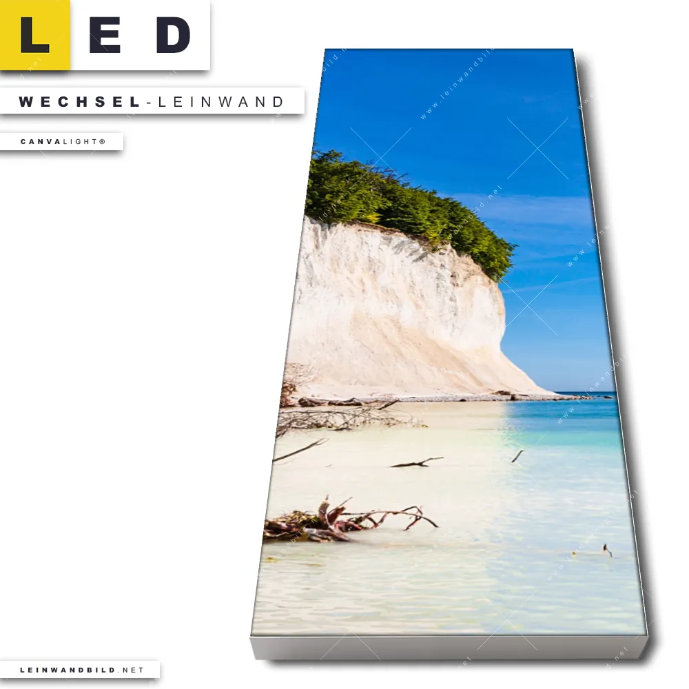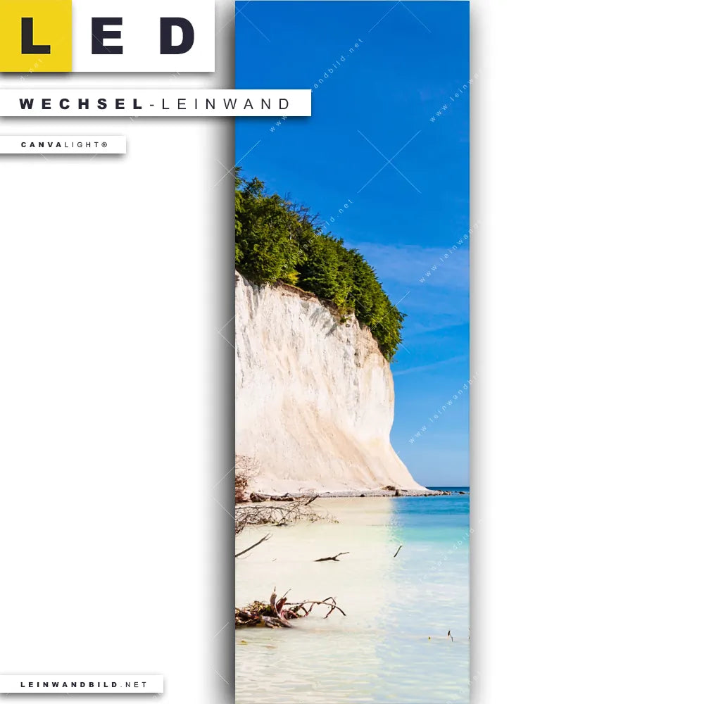 LED Wechsel-Leinwand Canvalight® TEX | Weiße Kreidefelswand am Meer | Schmal