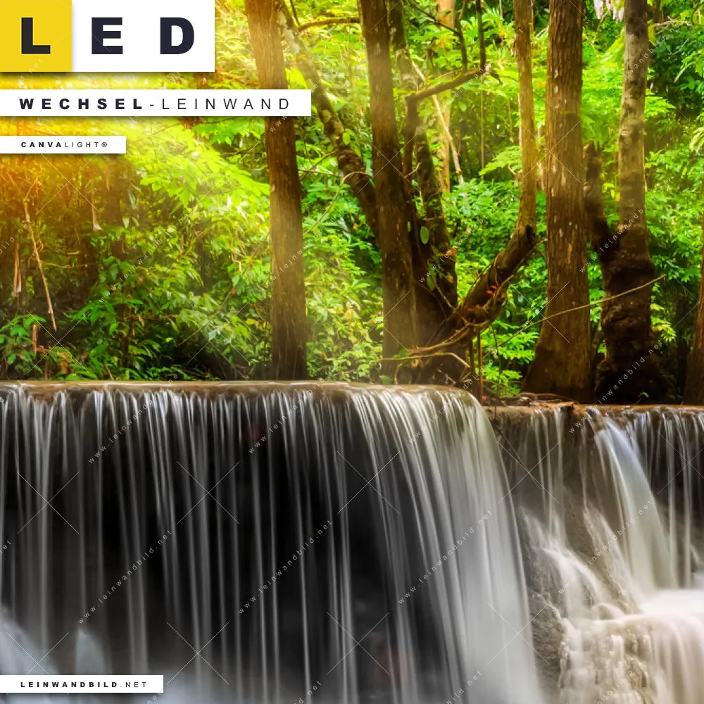 LED Wechsel-Leinwand Canvalight® TEX | Wald & Wasserfall No. 2 | Hochformat