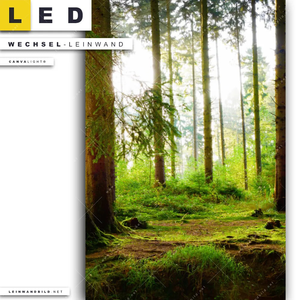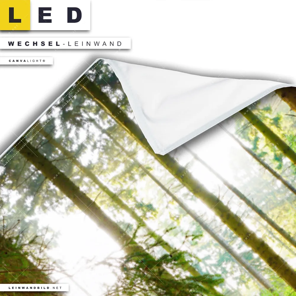 LED Wechsel-Leinwand Canvalight® TEX | Waldbach im Sonnenschein | Hochformat
