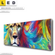 Dann sollte die Wechsel-Leinwand Canvalight® TEX | Abstrakter Löwenkopf | Schmal den Weg zu Dir finden. Die Austausch-Leinwand Mähne eines Löwen in bunt - passend für unsere stufenlos dimmbaren, steckerfertigen Leinwandbilder im LED Leuchtrahmen mit Fernbedienung und optionaler Farbtemperatursteuerung - fügt sich als Eye-Catcher harmonisch in jedes Bar - Gastronomie, Wohnzimmer - Schlafzimmer, Flur - Eingangsbereich Raumkonzept ein.