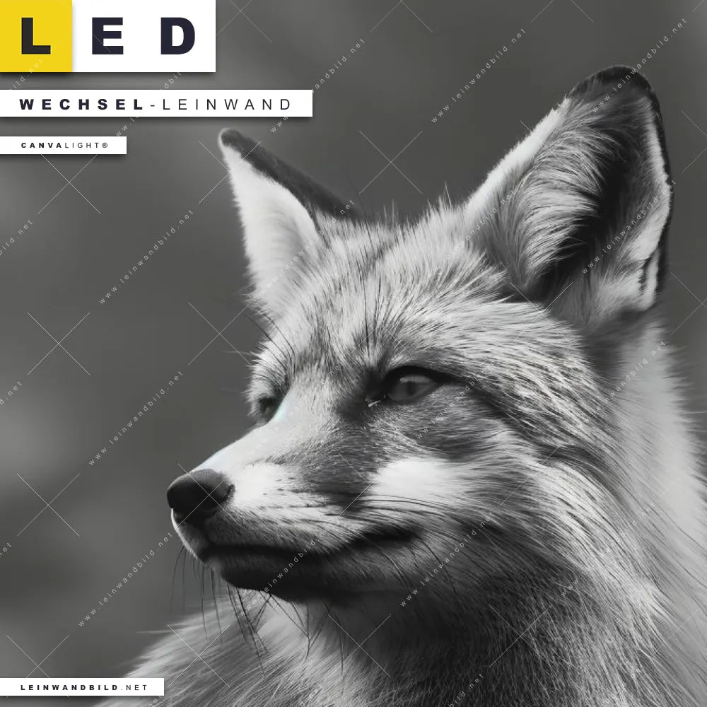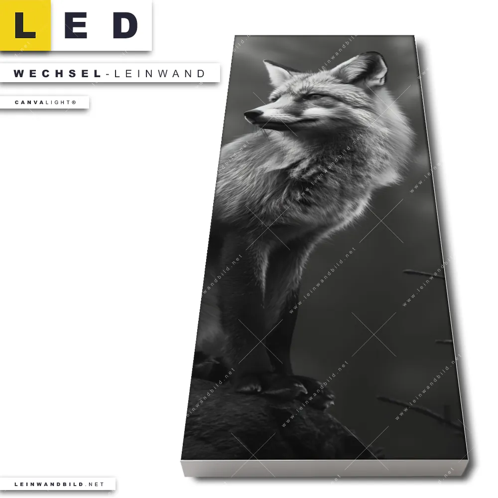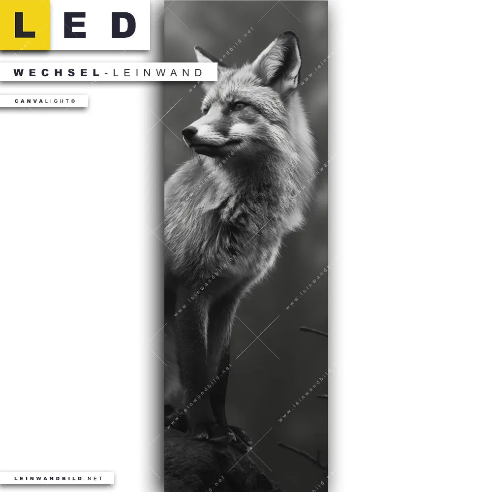 Du bist auf der Suche nach einer Tierwelt Wechsel-Leinwand für Dein LED-Leinwandbild im Schmalen Format? Begriffe wie Fuchs, Wald, Natur, Rotfuchs, Tier, Tierporträt haben Dich auf der Suche nach Deiner Ersatz-Leinwand für dein LED Wandbild im Panorama-Hochformat mit wechselbarer Leinwand inspiriert? Farben wie Weiss, Schwarz, Grau dürfen auf Deinem neuen Wechselmotiv für Dein XXL Leinwand-LED-Bild nicht fehlen und Leinwände im Natürlich - Realistisch, Schwarz - Weiss Stil für Leuchtbilder passen perfekt zu Deinem Einrichtungsstil?
