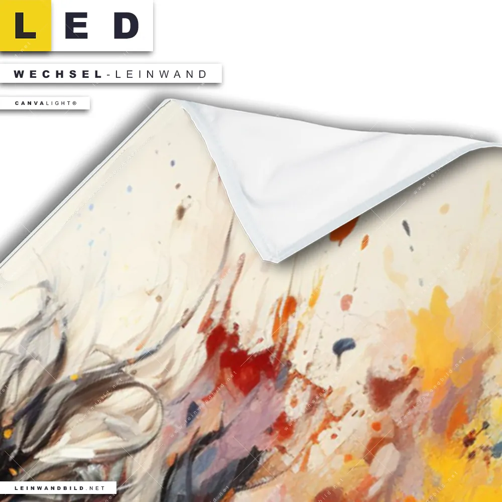 LED Wechsel-Leinwand Canvalight® TEX | Bella - Abstraktes Pferdeporträt | Panorama