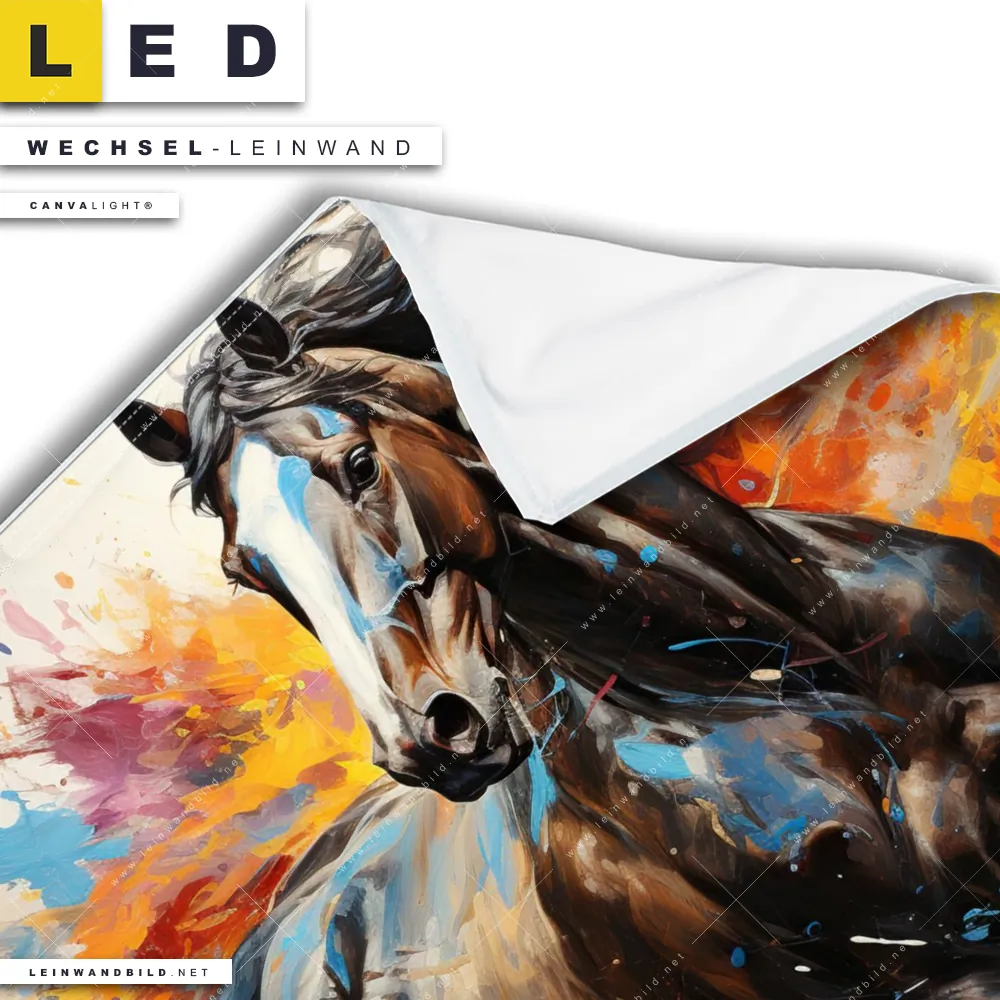 LED Wechsel-Leinwand Canvalight® TEX | Bella - Abstraktes Pferdeporträt | Quadrat