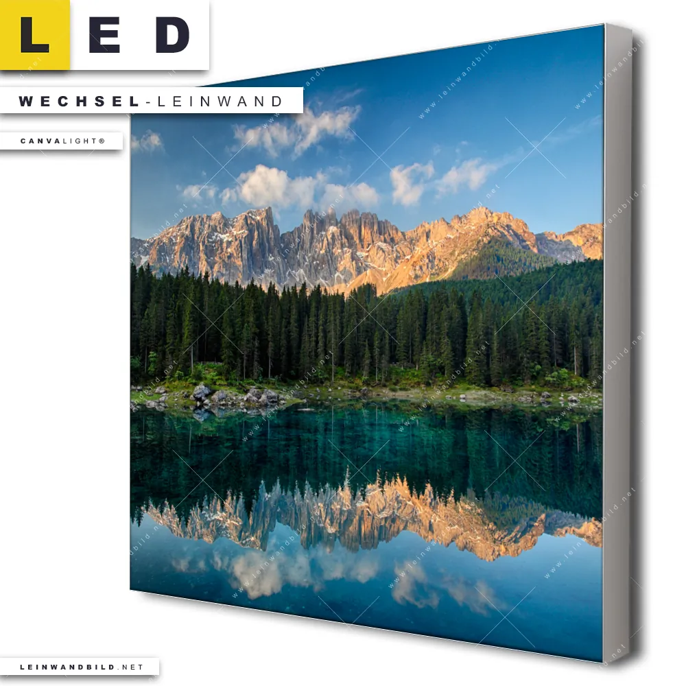 Du bist auf der Suche nach einer Landschaften Wechsel-Leinwand für Dein LED-Leinwandbild im Quadratischen Format? Begriffe wie Berge, See, Gebirge, Wald, Bergsee, spiegelung haben Dich auf der Suche nach Deiner Ersatz-Leinwand für dein LED Wandbild mit wechselbarer Leinwand inspiriert? Farben wie Blau, Grün dürfen auf Deinem neuen Wechselmotiv für Dein XXL Leinwand-LED-Bild nicht fehlen und Leinwände im Modern Art Stil für Leuchtbilder passen perfekt zu Deinem Einrichtungsstil?