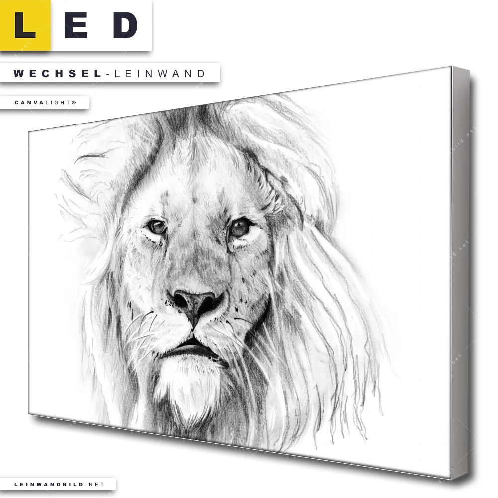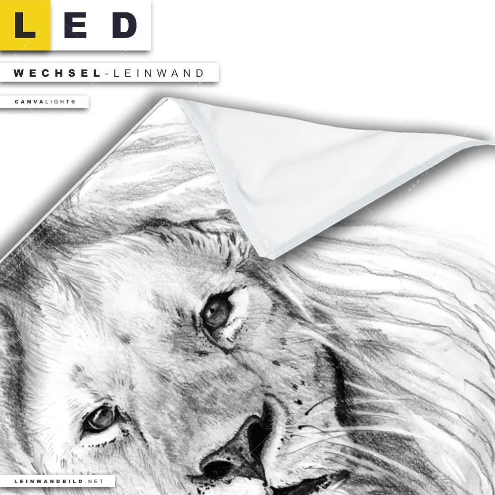 LED Wechsel-Leinwand Canvalight® TEX | Bleistiftzeichnung Löwe | Querformat