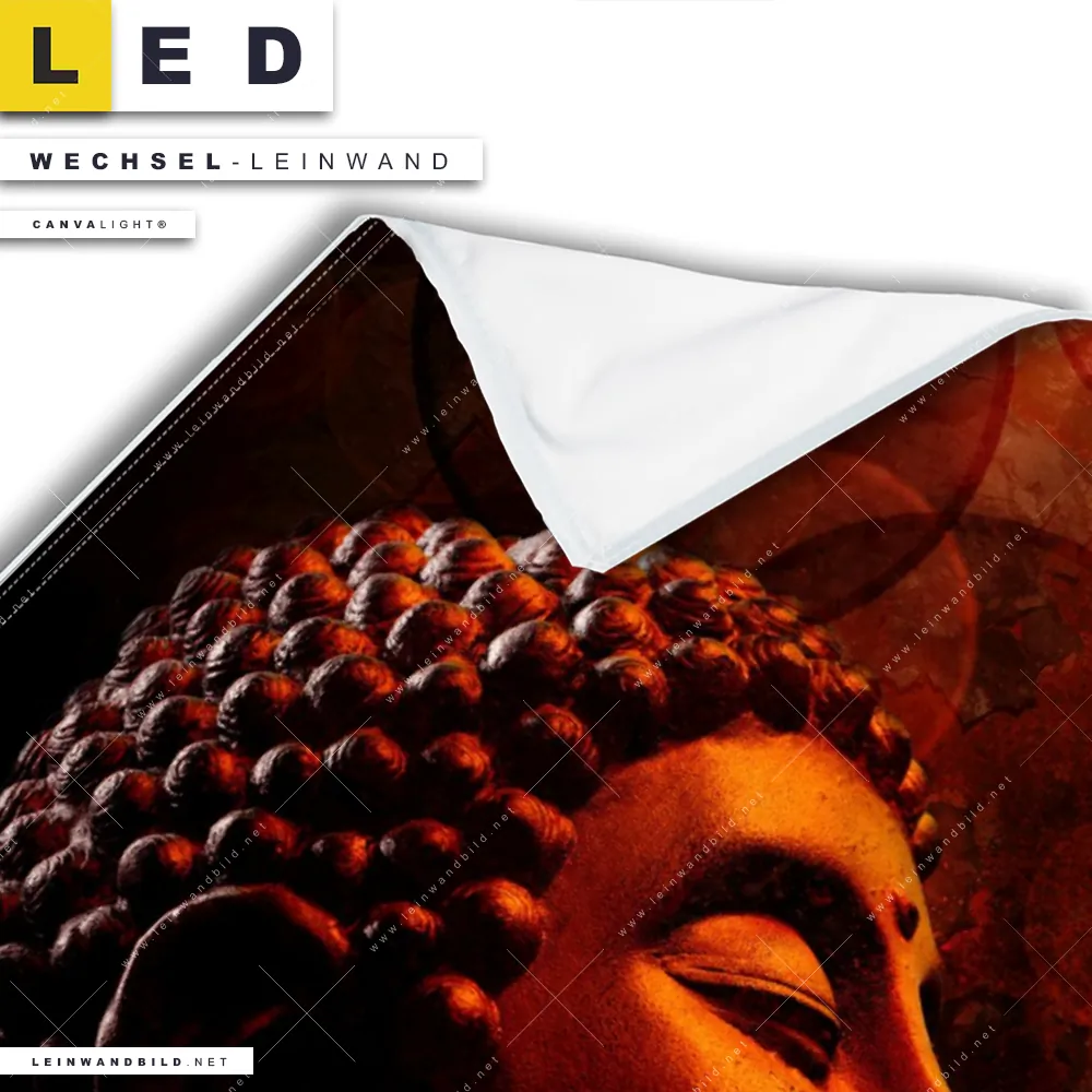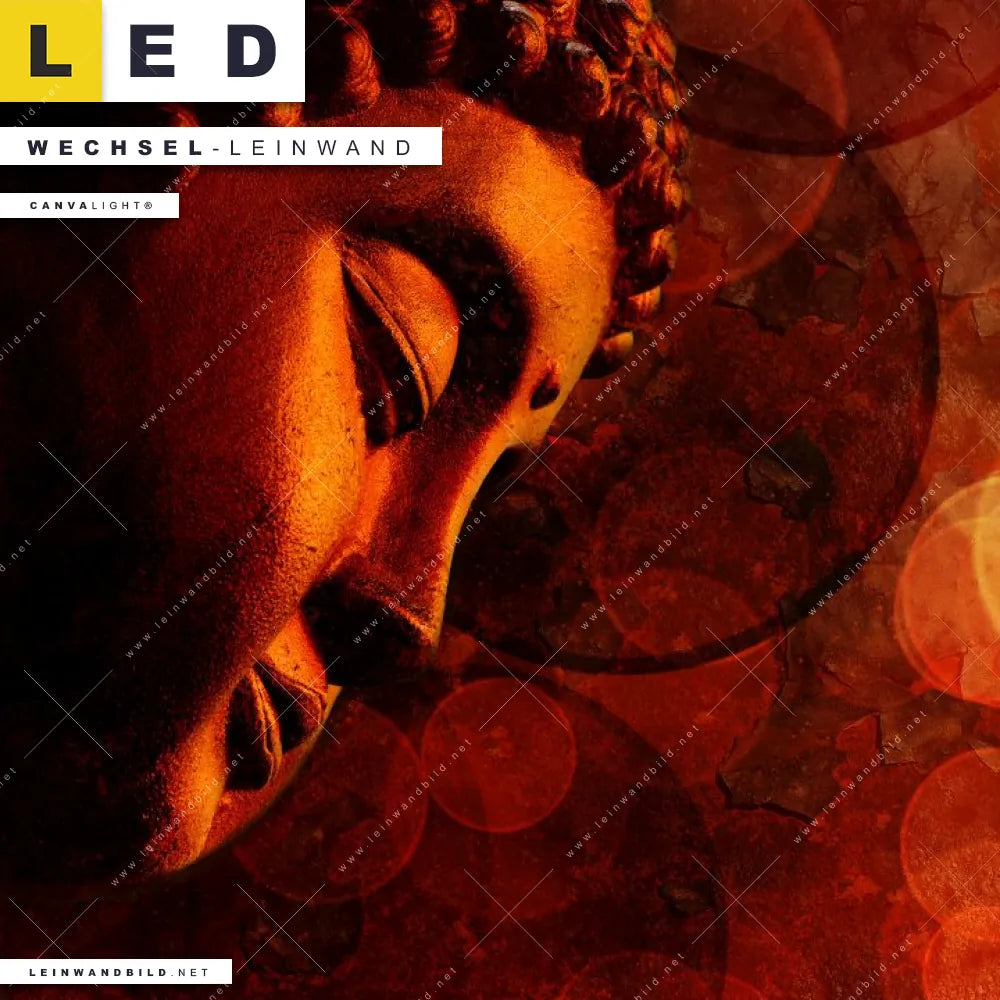 Du bist auf der Suche nach einer Buddha - Feng Shui Wechsel-Leinwand für Dein LED-Leinwandbild im Hochformat? Begriffe wie Buddha, Buddhismus, Religion, Feng Shui, Zen, Meditation haben Dich auf der Suche nach Deiner Ersatz-Leinwand für dein LED Wandbild mit wechselbarer Leinwand inspiriert? Farben wie Orange, Rot, Gold, Gelb dürfen auf Deinem neuen Wechselmotiv für Dein XXL Leinwand-LED-Bild nicht fehlen und Leinwände im Mixed Media, Modern Art Stil für Leuchtbilder passen perfekt zu Deinem Einrichtungsstil?