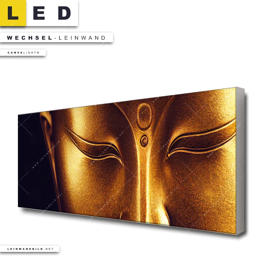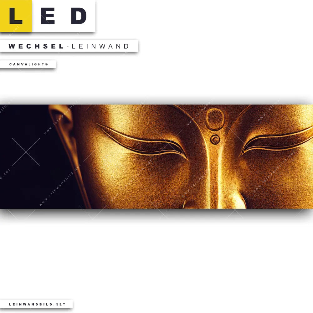 Du bist auf der Suche nach einer Buddha - Feng Shui Wechsel-Leinwand für Dein LED-Leinwandbild im Panorama-Format? Begriffe wie Buddha, Buddhismus, Religion, Feng Shui, Zen, Meditation, spirituell, heilig, Esoterik, Gott, Gesicht haben Dich auf der Suche nach Deiner Ersatz-Leinwand für dein extra breites LED Wandbild mit wechselbarer Leinwand inspiriert? Farben wie Braun, Beige, Gold dürfen auf Deinem neuen Wechselmotiv für Dein XXL Leinwand-LED-Bild nicht fehlen und Leinwände im Mixed Media, Modern Art Stil für Leuchtbilder passen perfekt zu Deinem Einrichtungsstil?