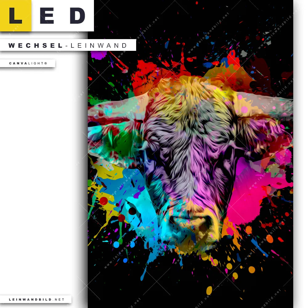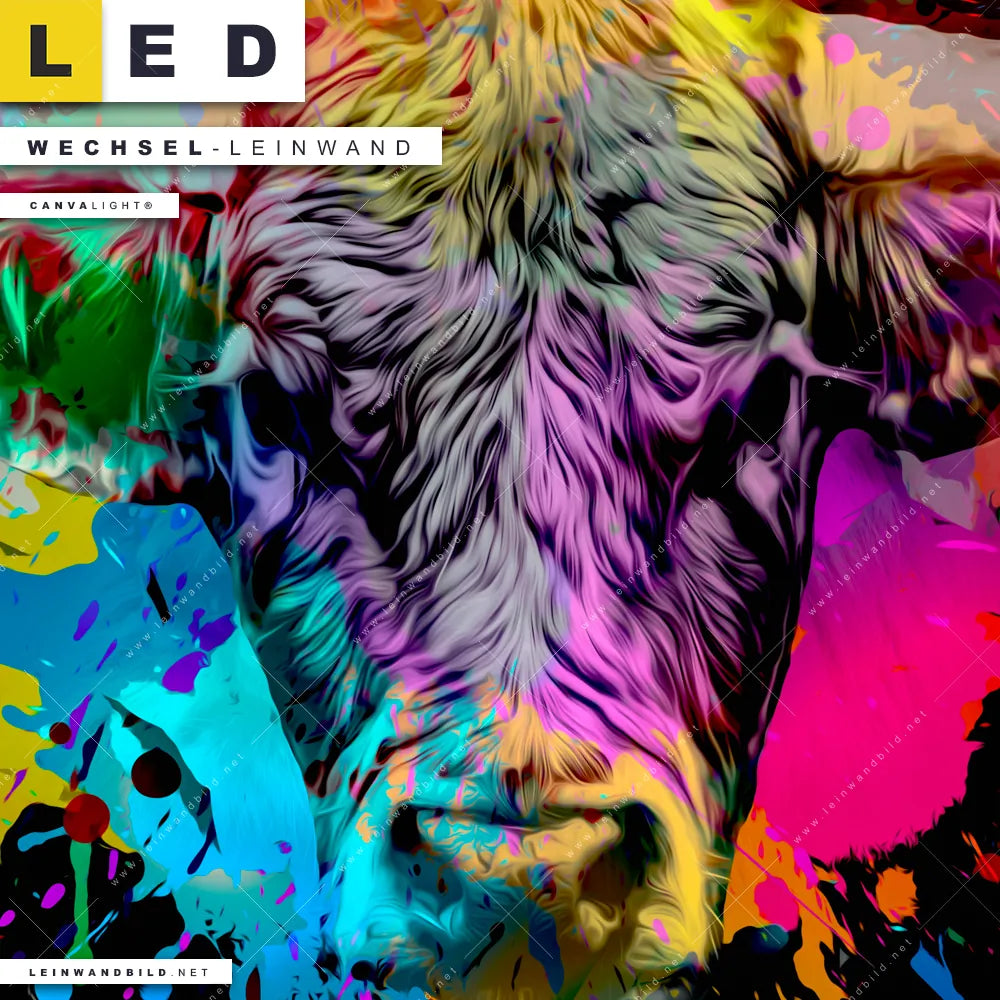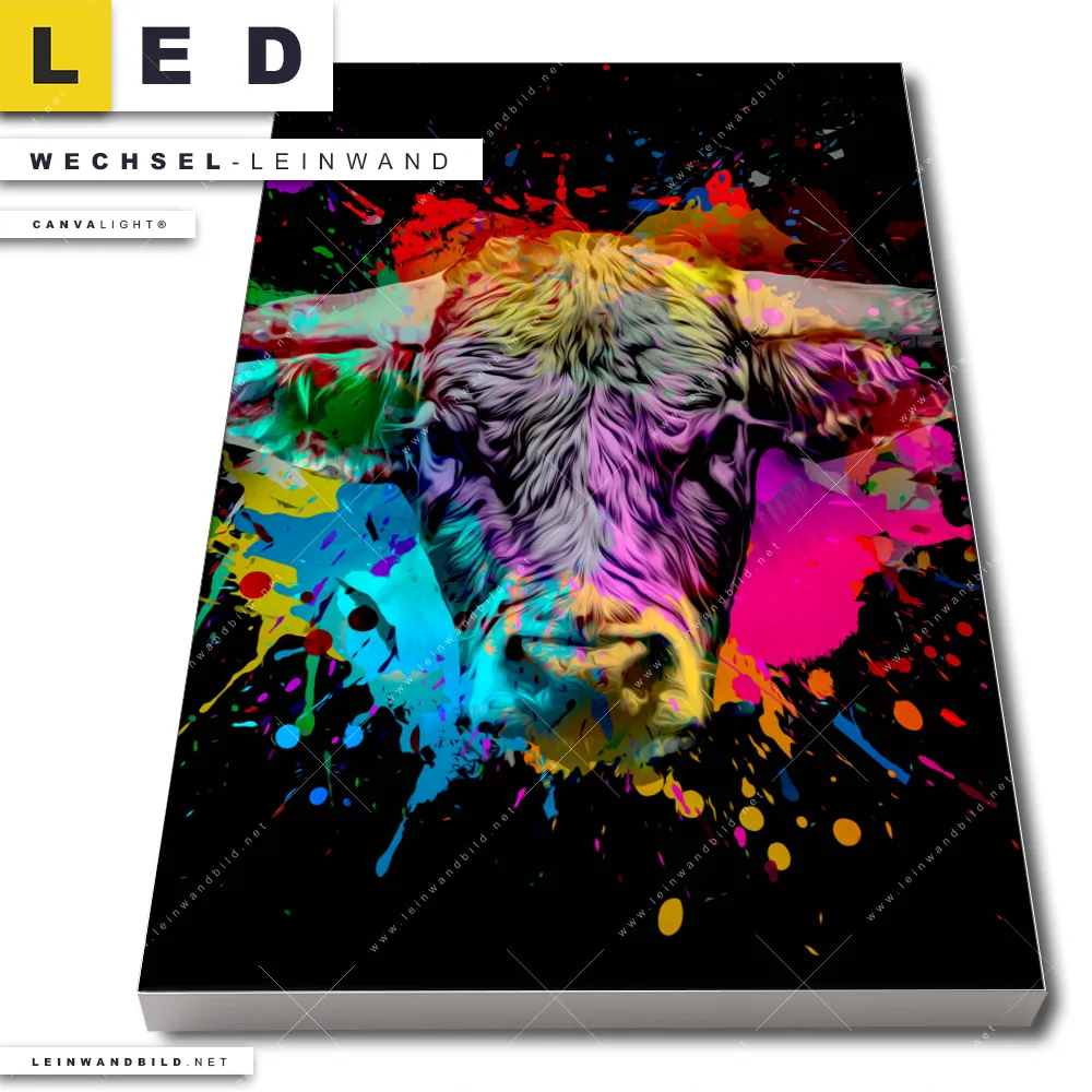 Du bist auf der Suche nach einer Tierwelt Wechsel-Leinwand für Dein LED-Leinwandbild im Hochformat? Begriffe wie Tier, Stier, Hochlandkuh, Highlander, Büffel, Splash, Farbspritzer, Rind haben Dich auf der Suche nach Deiner Ersatz-Leinwand für dein LED Wandbild mit wechselbarer Leinwand inspiriert? Farben wie Bunt, Schwarz dürfen auf Deinem neuen Wechselmotiv für Dein XXL Leinwand-LED-Bild nicht fehlen und Leinwände im Abstrakt, Modern Art, Pop Art Stil für Leuchtbilder passen perfekt zu Deinem Einrichtungsstil?
