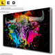 Dann sollte die Wechsel-Leinwand Canvalight® TEX | Bunter Stier Schwarz | Quadrat den Weg zu Dir finden. Die Austausch-Leinwand Stierkopf bunt - passend für unsere stufenlos dimmbaren, steckerfertigen Leinwandbilder im Leuchtrahmen mit Fernbedienung und optionaler Farbtemperatursteuerung - fügt sich als Eye-Catcher harmonisch in jedes Bar - Gastronomie, Wohnzimmer - Schlafzimmer, Flur - Eingangsbereich, Büro - Kanzlei Raumkonzept ein.