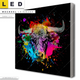 Dann sollte die Wechsel-Leinwand Canvalight® TEX | Bunter Stier Schwarz | Querformat den Weg zu Dir finden. Die Austausch-Leinwand Stierkopf bunt - passend für unsere stufenlos dimmbaren, steckerfertigen Leinwandbilder im Leuchtrahmen mit Fernbedienung und optionaler Farbtemperatursteuerung - fügt sich als Eye-Catcher harmonisch in jedes Bar - Gastronomie, Wohnzimmer - Schlafzimmer, Flur - Eingangsbereich, Büro - Kanzlei Raumkonzept ein.