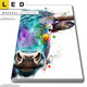 Bitte beachte, dass die Farben, der auf dem Monitor abgebildeten Kuhkopf mit Spritzern von Farbe Darstellung, möglicherweise von den Originalfarben deiner Canvalight® TEX Wechsel-Leinwand abweichen können.