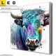 Dann sollte die Wechsel-Leinwand Canvalight® TEX | Bunter Stierkopf | Querformat den Weg zu Dir finden. Die Austausch-Leinwand Porträt eines männlichen Rindes - passend für unsere stufenlos dimmbaren, steckerfertigen Leinwandbilder im Leuchtrahmen mit Fernbedienung und optionaler Farbtemperatursteuerung - fügt sich als Eye-Catcher harmonisch in jedes Bar - Gastronomie, Wohnzimmer - Schlafzimmer, Flur - Eingangsbereich, Büro - Kanzlei Raumkonzept ein.