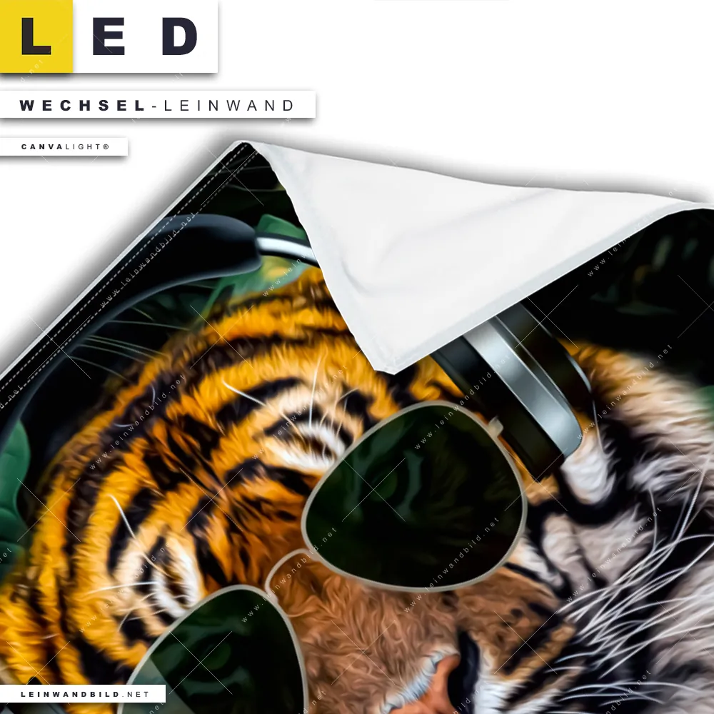 LED Wechsel-Leinwand Canvalight® TEX | Cooler Tiger | Querformat