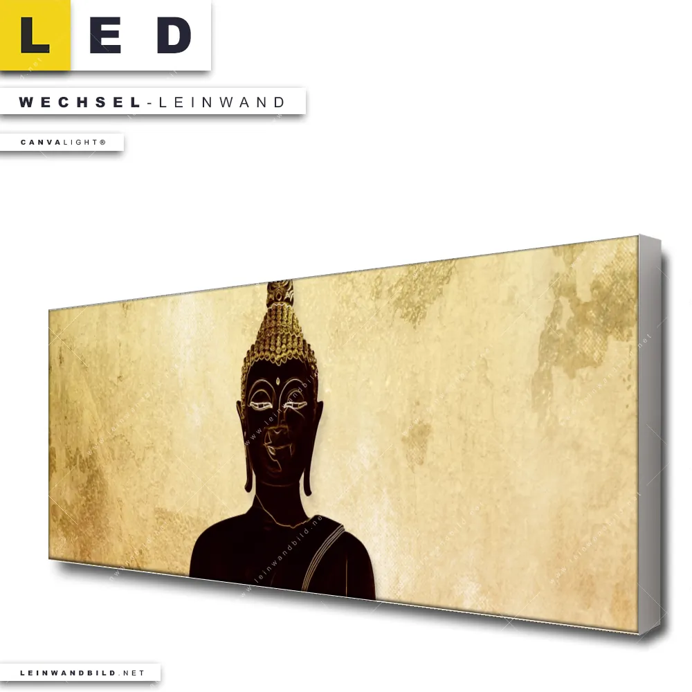 Du bist auf der Suche nach einer Buddha - Feng Shui Wechsel-Leinwand für Dein LED-Leinwandbild im Panorama-Format? Begriffe wie Buddha, Buddhismus, Religion, Feng Shui, Zen, Meditation haben Dich auf der Suche nach Deiner Ersatz-Leinwand für dein extra breites LED Wandbild mit wechselbarer Leinwand inspiriert? Farben wie Schwarz, Gold, Orange, Gelb dürfen auf Deinem neuen Wechselmotiv für Dein XXL Leinwand-LED-Bild nicht fehlen und Leinwände im Modern Art, Retro - Vintage Stil für Leuchtbilder passen perfekt zu Deinem Einrichtungsstil?