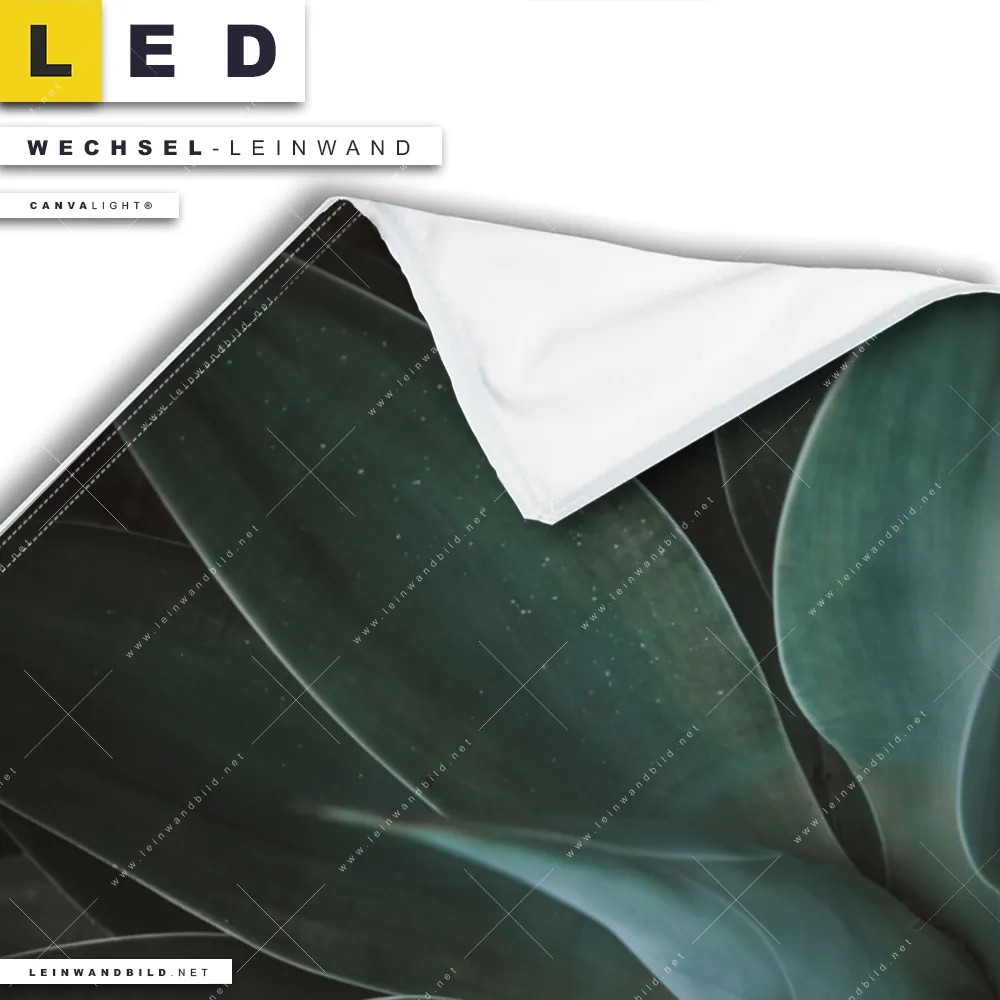 LED Wechsel-Leinwand Canvalight® TEX | Dunkles Agavenblatt | Hochformat