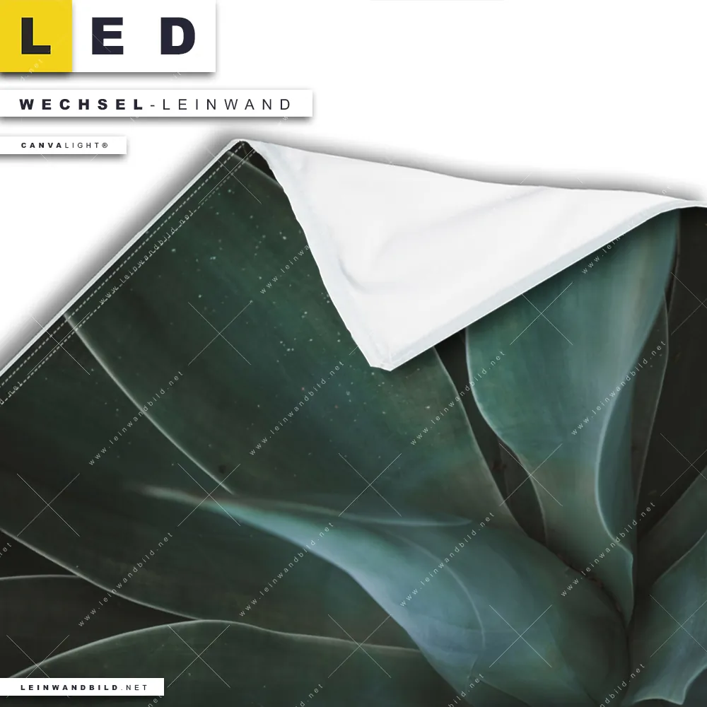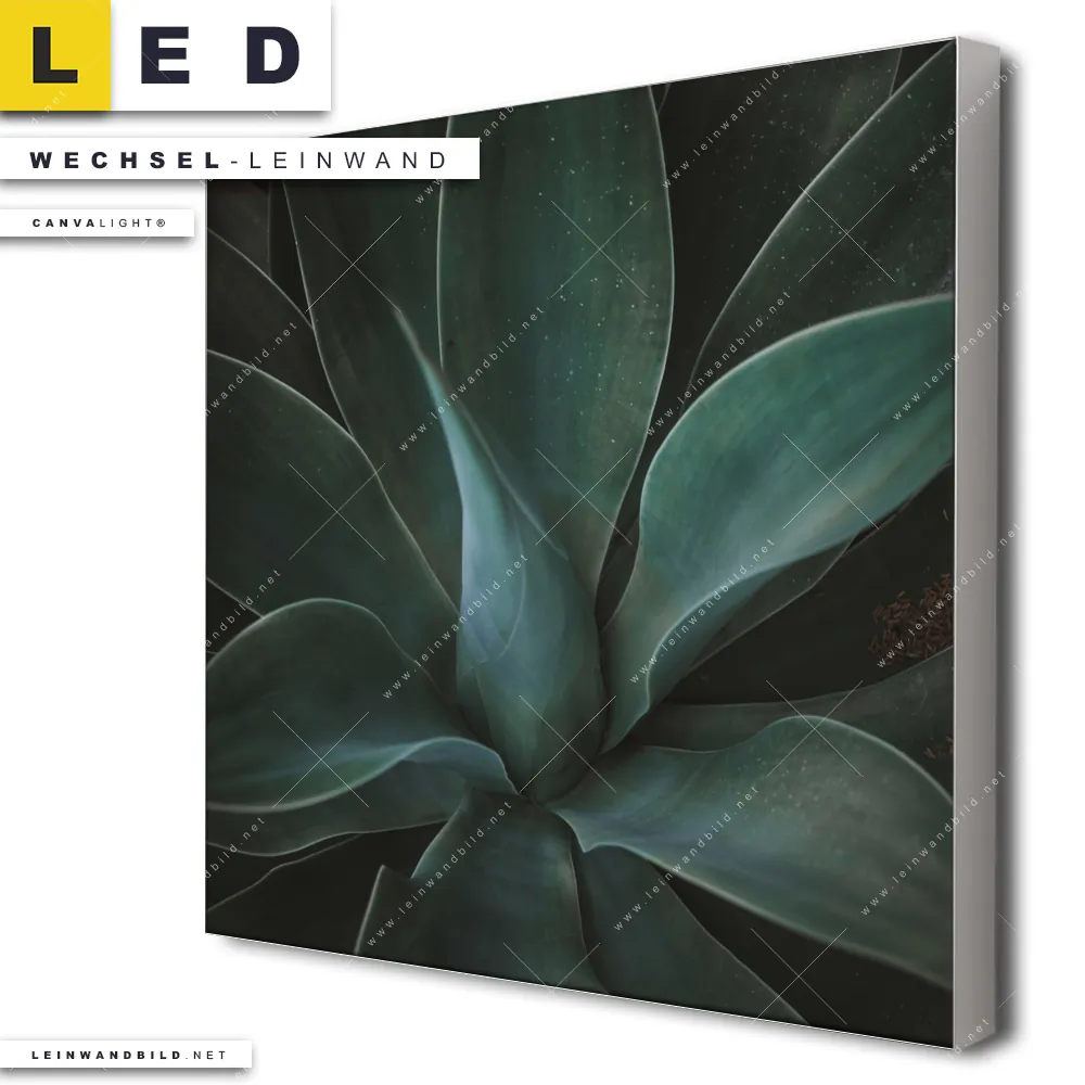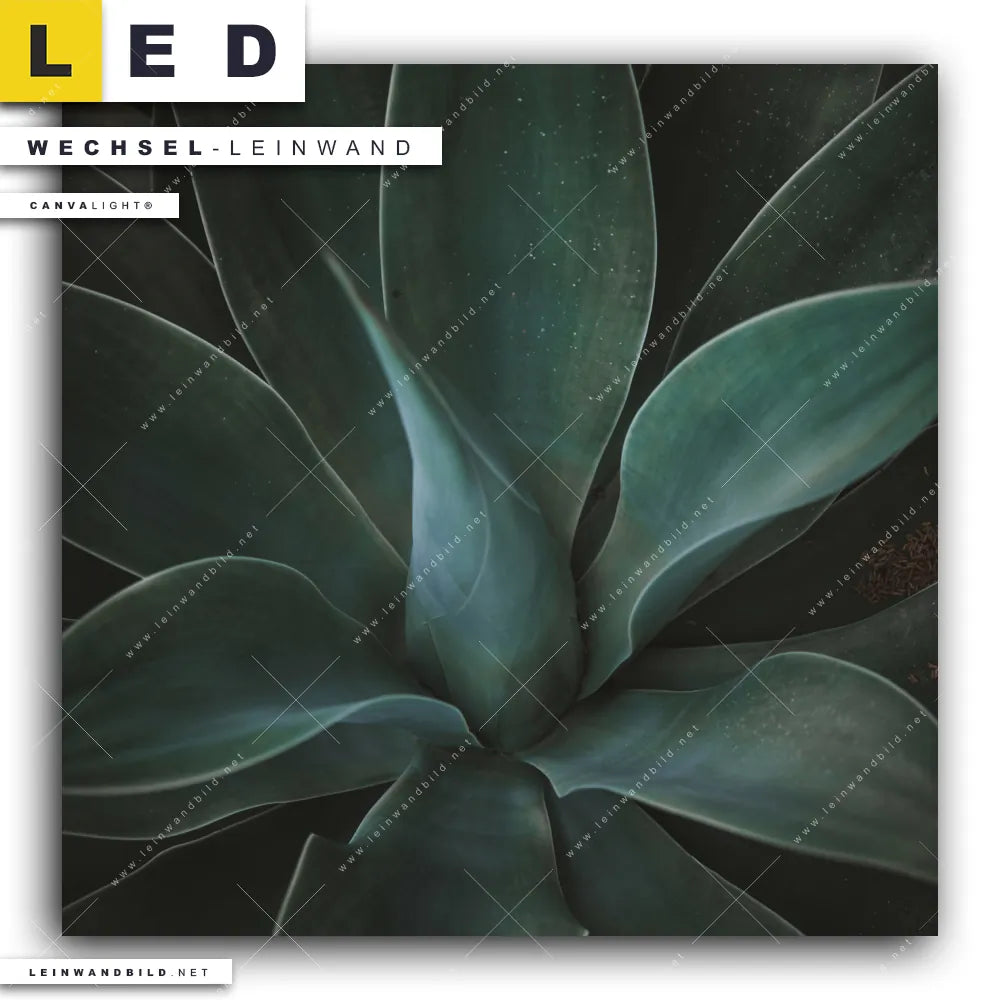 Du konfigurierst Deine individuelle LED Wechsel-Leinwand Canvalight® TEX | Dunkles Agavenblatt | Quadrat und wir produzieren sie NEU für Dich. Unsere Blumen - Botanik Austausch-Fotoleinwände für Canvalight® LED Bilder sind KEINE Lagerware. Du bist Dir unsicher, welches Motiv oder Format das richtige für dein individuelles LED Wechselmotiv auf Leinwand ist, dann helfen wir dir gerne weiter und beraten dich!