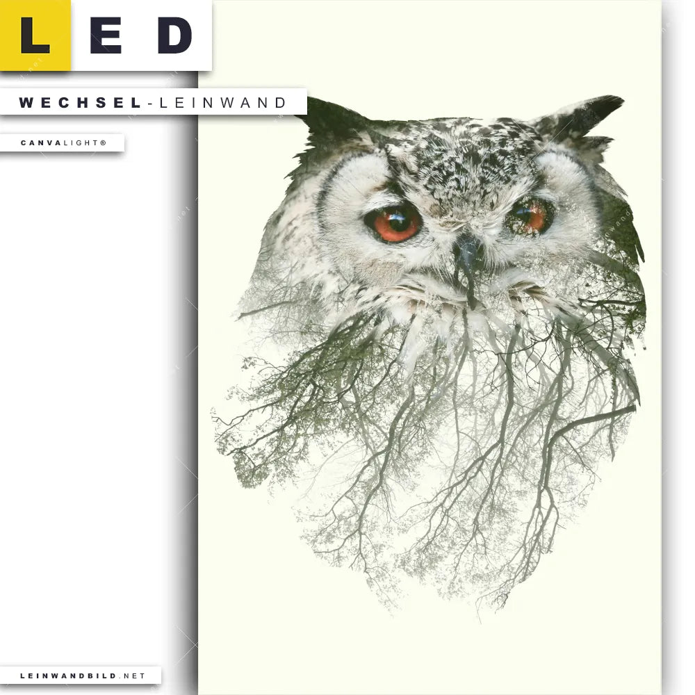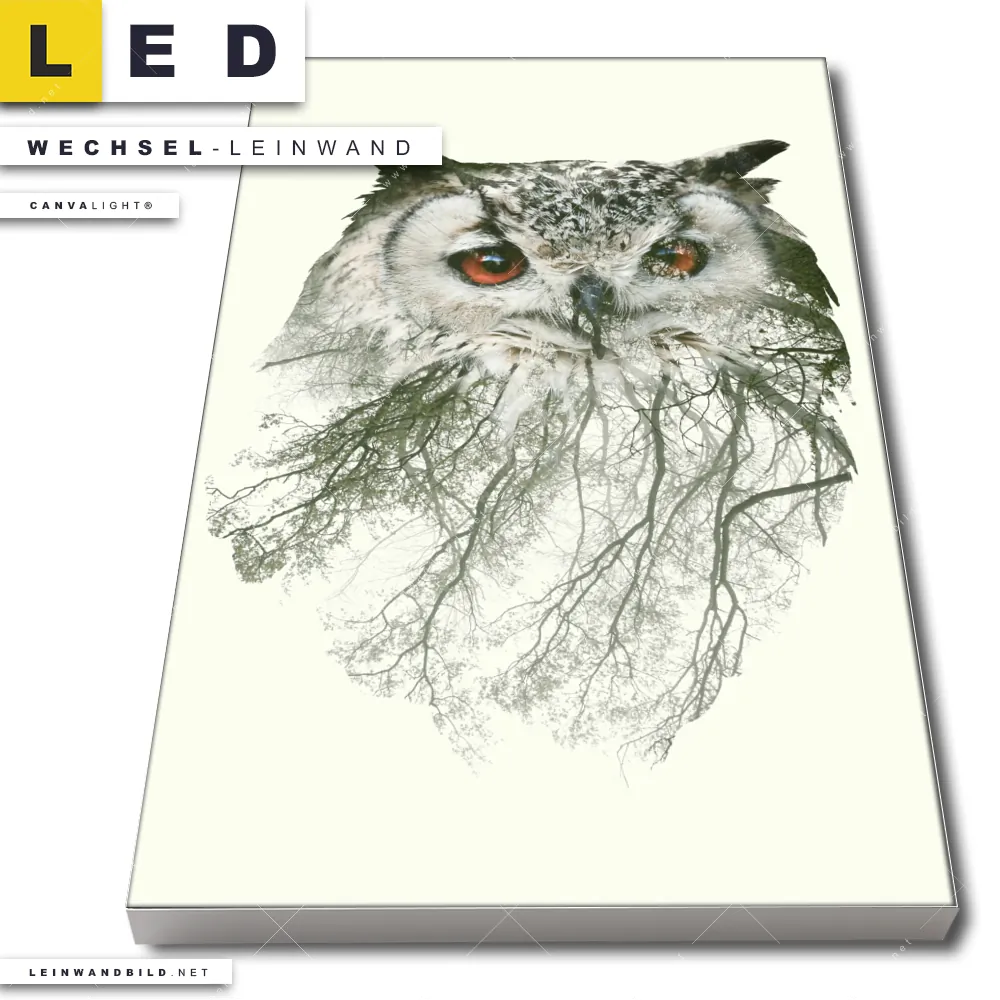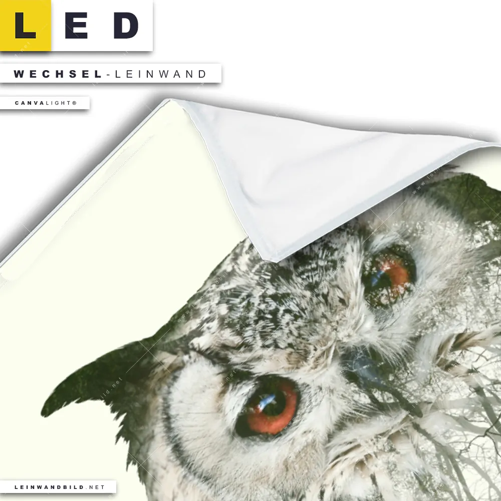 Du bist auf der Suche nach einer Tierwelt Wechsel-Leinwand für Dein LED-Leinwandbild im Hochformat? Begriffe wie Vogel, Eule, Wald, Doppelbelichtung, Natur, skandinavisch, Bäume haben Dich auf der Suche nach Deiner Ersatz-Leinwand für dein LED Wandbild mit wechselbarer Leinwand inspiriert? Farben wie Weiss, Beige dürfen auf Deinem neuen Wechselmotiv für Dein XXL Leinwand-LED-Bild nicht fehlen und Leinwände im Modern Art Stil für Leuchtbilder passen perfekt zu Deinem Einrichtungsstil?