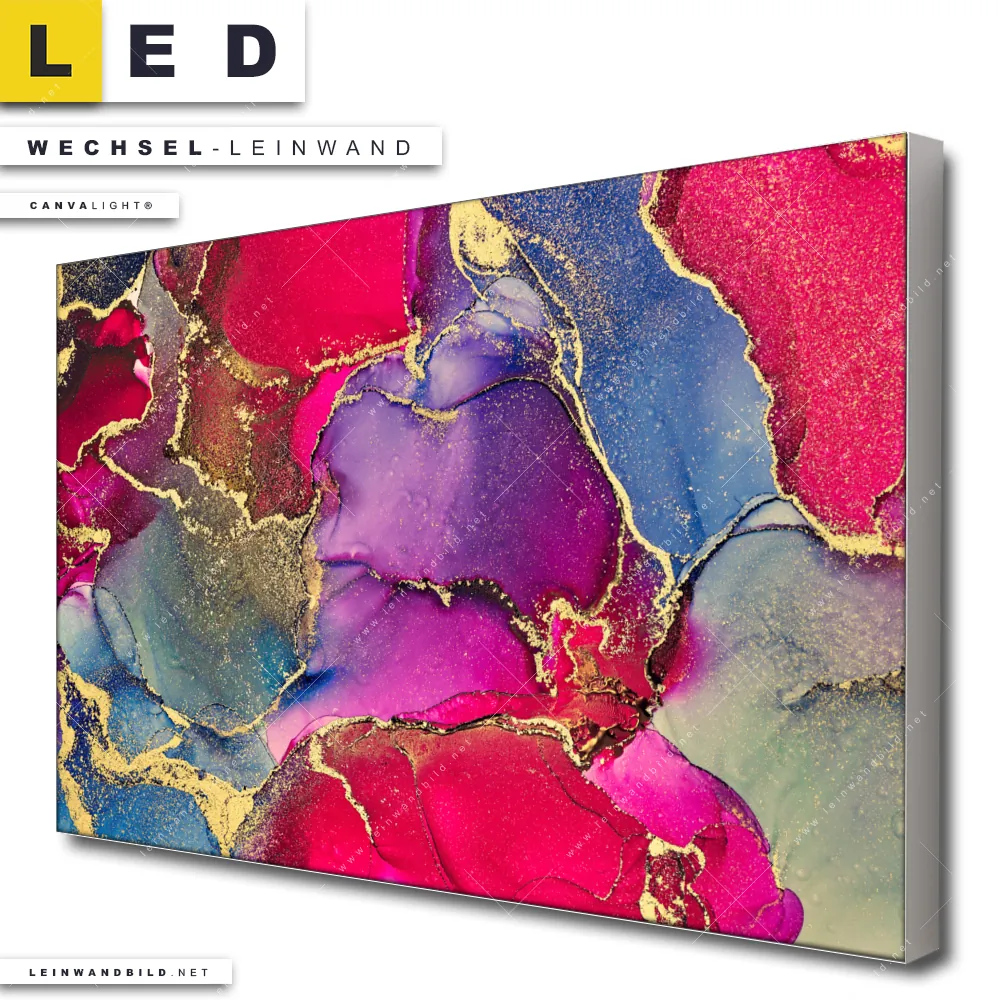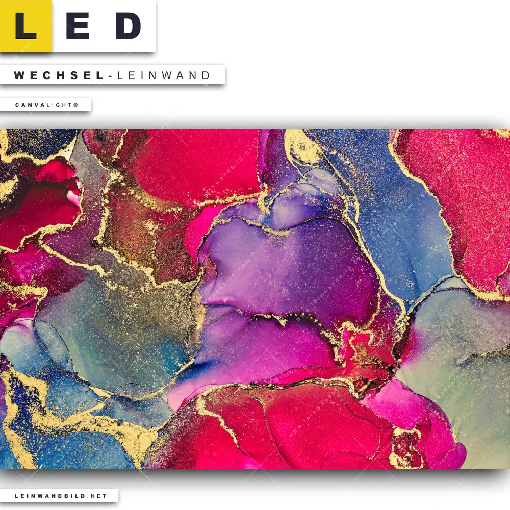 Du bist auf der Suche nach einer Muster - Texturen Wechsel-Leinwand für Dein LED-Leinwandbild im Querformat? Begriffe wie Flüssigkeit, Acryl, flüssig, Farbe, Marmorierung, Tinte, Alkohol, Fluid Art haben Dich auf der Suche nach Deiner Ersatz-Leinwand für dein breites LED Wandbild mit wechselbarer Leinwand inspiriert? Farben wie Weiss, Lila, Gold, Türkis, Rosa, Rot, Blau dürfen auf Deinem neuen Wechselmotiv für Dein XXL Leinwand-LED-Bild nicht fehlen und Leinwände im Abstrakt, Modern Art Stil für Leuchtbilder passen perfekt zu Deinem Einrichtungsstil?