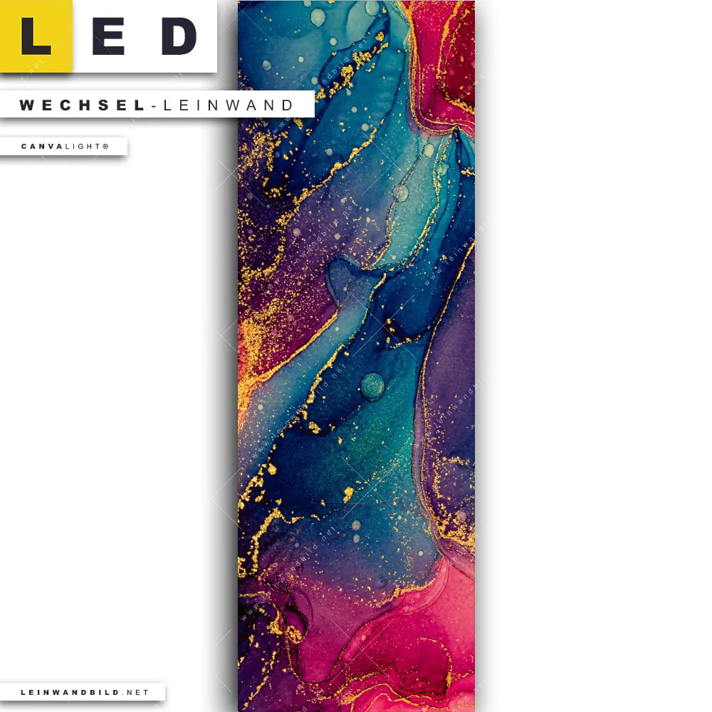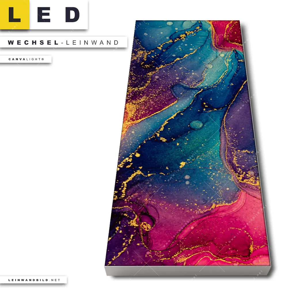 Du bist auf der Suche nach einer Muster - Texturen Wechsel-Leinwand für Dein LED-Leinwandbild im Schmalen Format? Begriffe wie Marmor, Flüssigkeit, Acryl, flüssig, Farbe, Marmorierung, Tinte, Fluid Art haben Dich auf der Suche nach Deiner Ersatz-Leinwand für dein LED Wandbild im Panorama-Hochformat mit wechselbarer Leinwand inspiriert? Farben wie Lila, Blau, Gold, Rot, Türkis, Orange dürfen auf Deinem neuen Wechselmotiv für Dein XXL Leinwand-LED-Bild nicht fehlen und Leinwände im Abstrakt, Modern Art Stil für Leuchtbilder passen perfekt zu Deinem Einrichtungsstil?